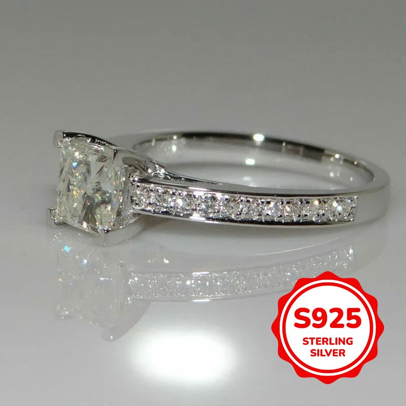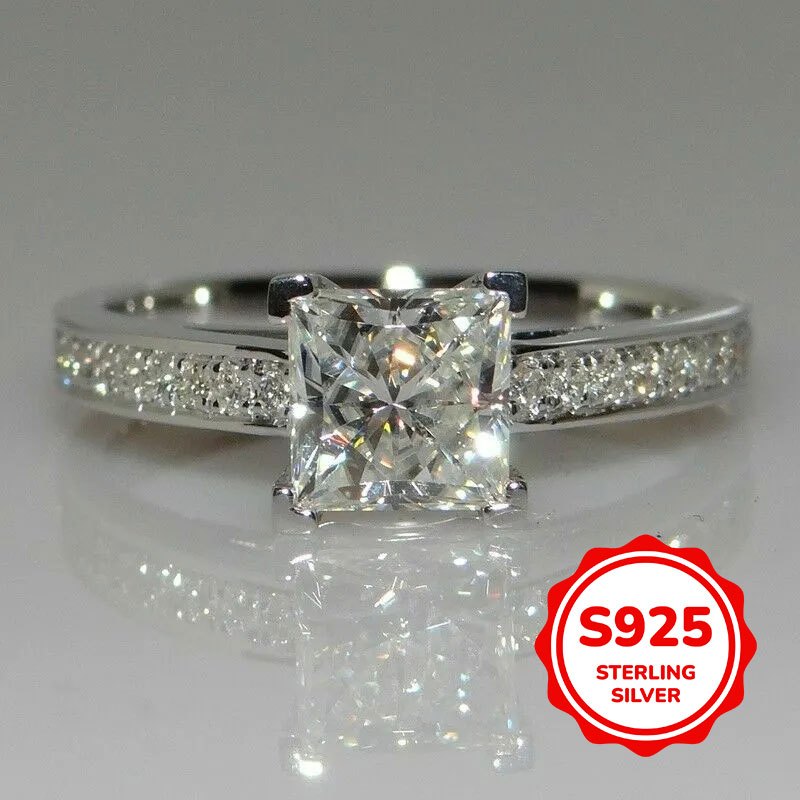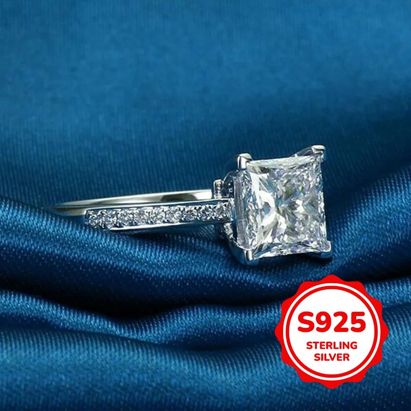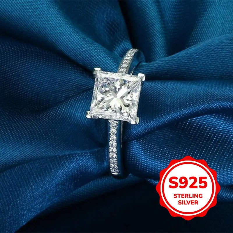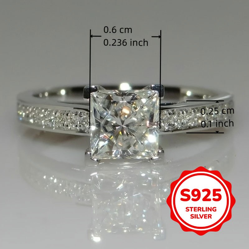 This elegant engagement ring features a square synthetic zirconia stone set in a pure S925 silvery band. Perfect for wedding proposals or special occasions.