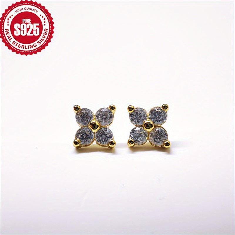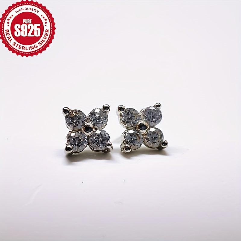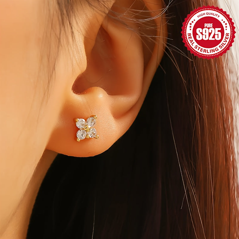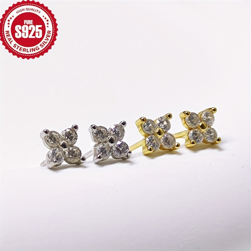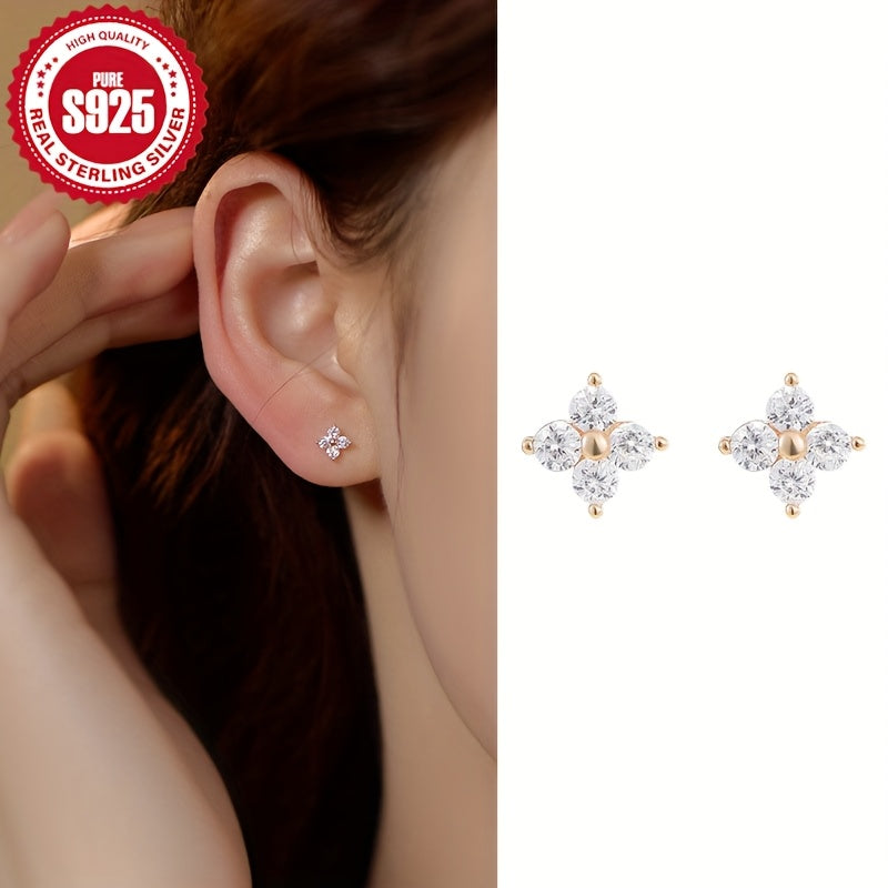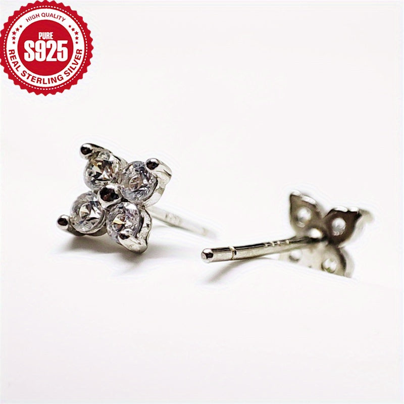 Women's S925 Silvery Mini Four Leaf Clover Flower Earrings