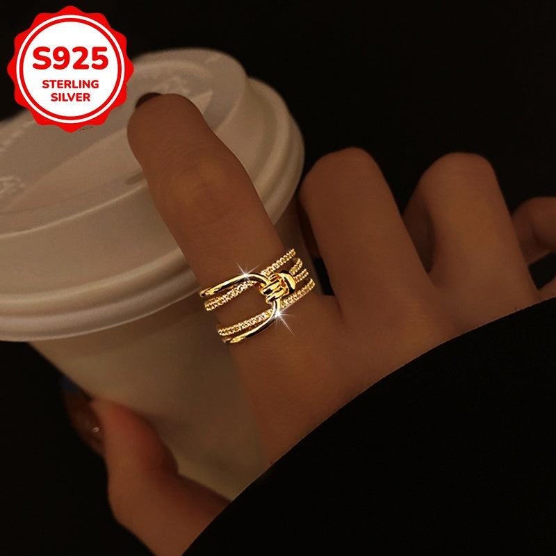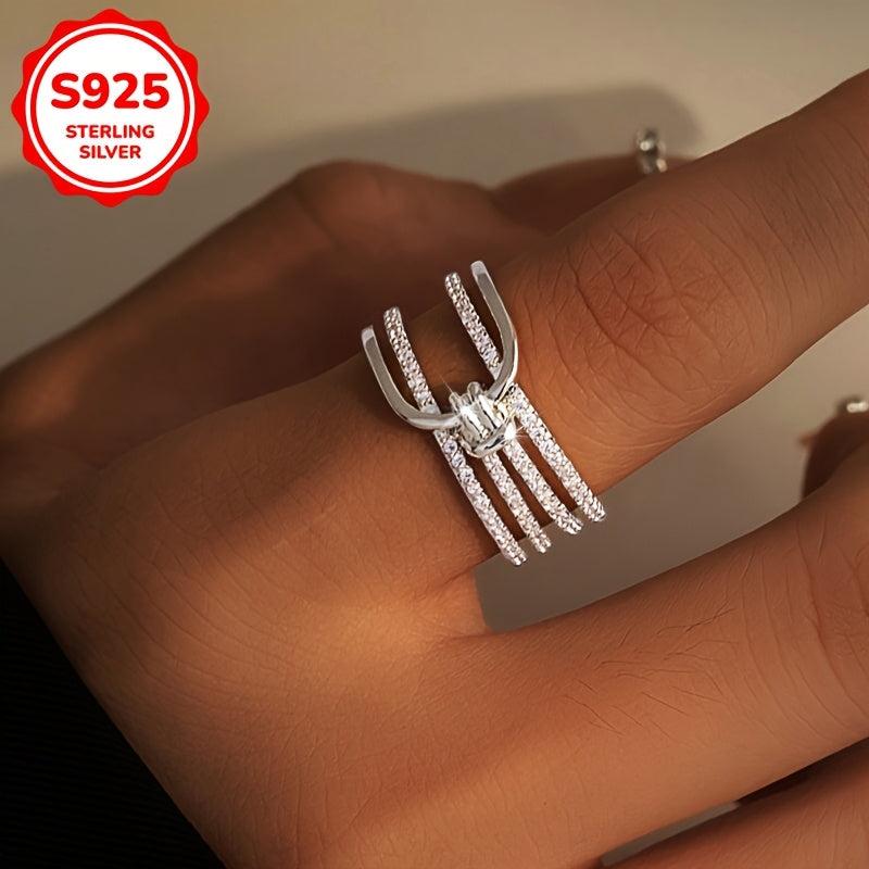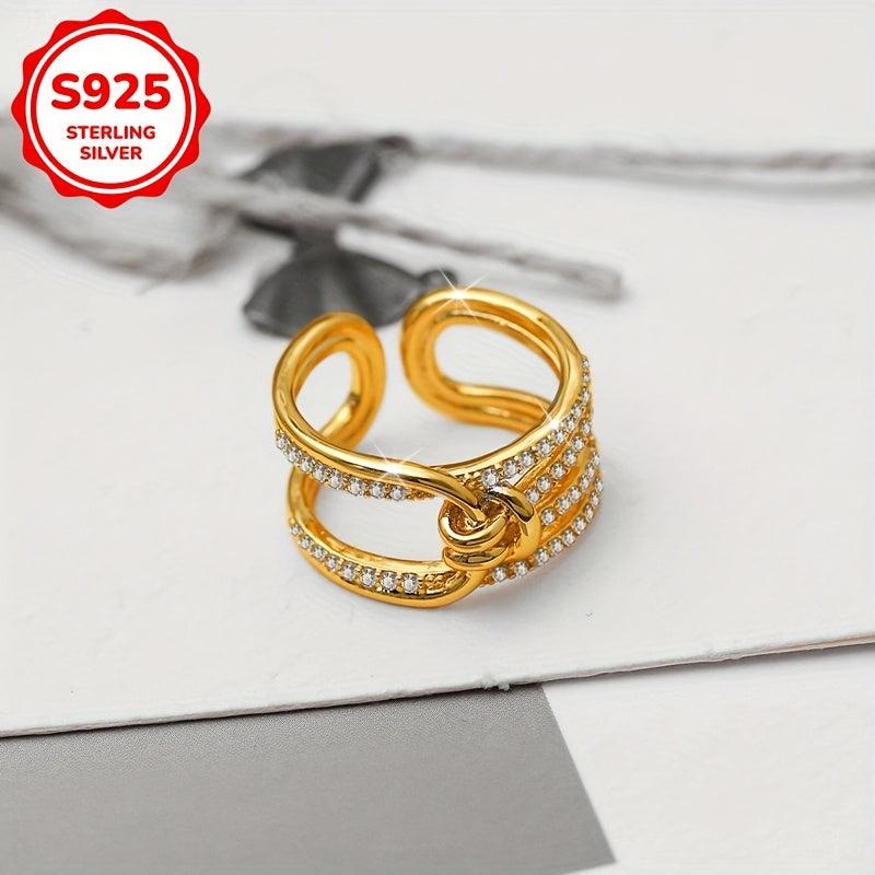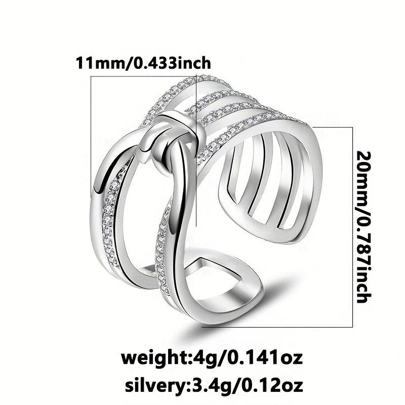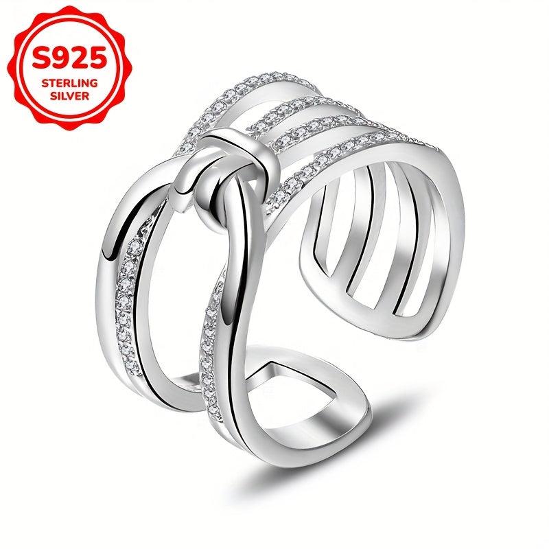 Elegant ring with synthetic zirconia inlay and intricate rope knot design. Made of high-quality 925 silver, lightweight at 4g. Perfect for daily wear, holidays, and anniversaries.