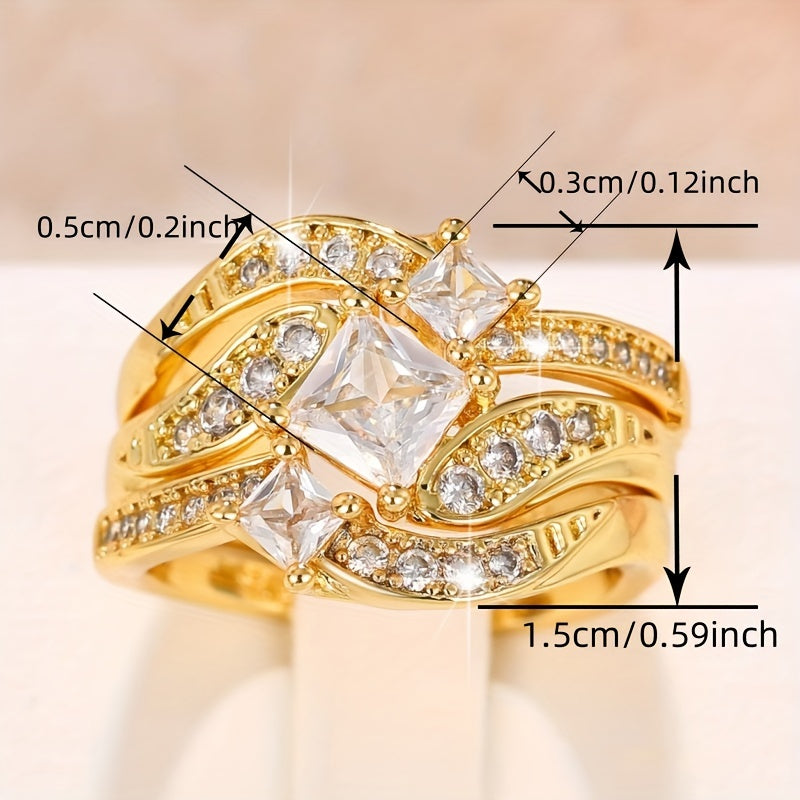 Elegant 3-piece ring set with four prong square cubic zirconia stones. Perfect for weddings, parties, banquets, and anniversaries. Great gift idea!