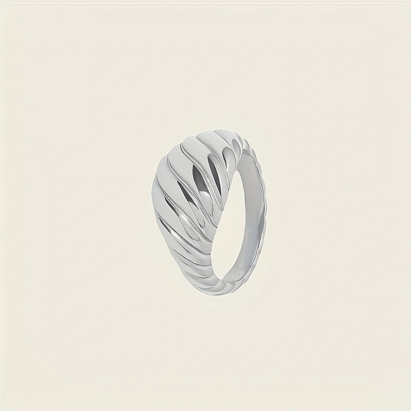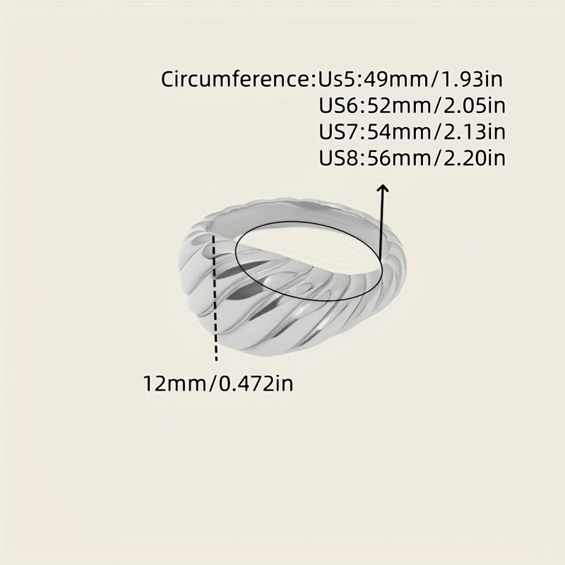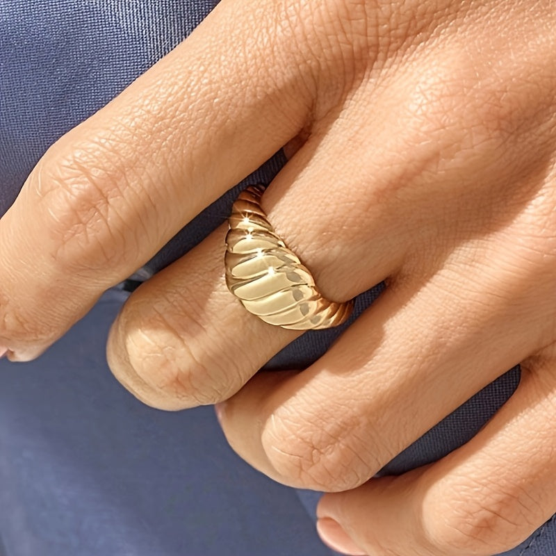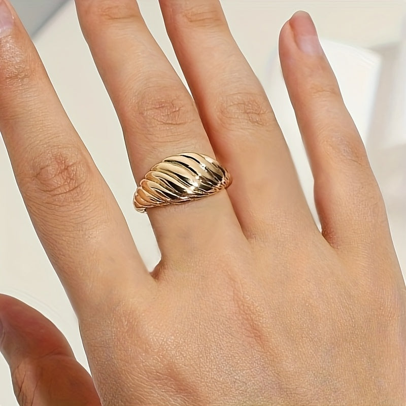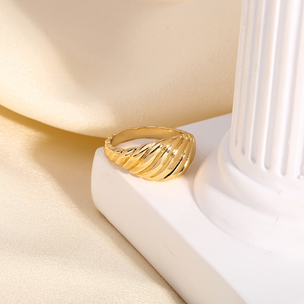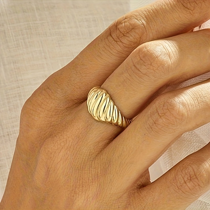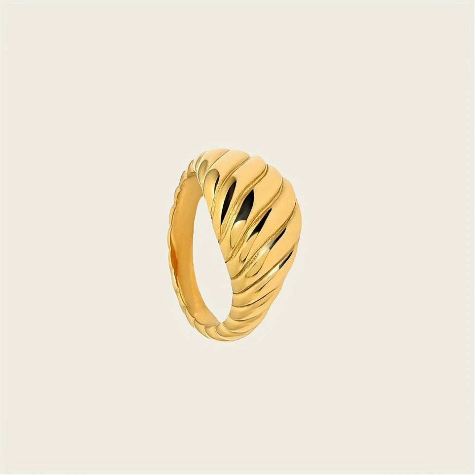 This fashionable stainless steel ring features a zigzag pattern, perfect for daily wear or parties. It is versatile and can be worn as a stylish accessory. Made from high-quality 316 stainless steel with a golden plate finish.