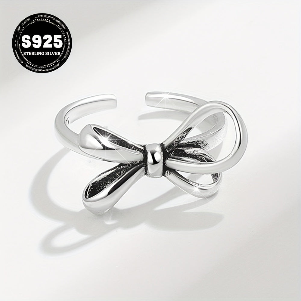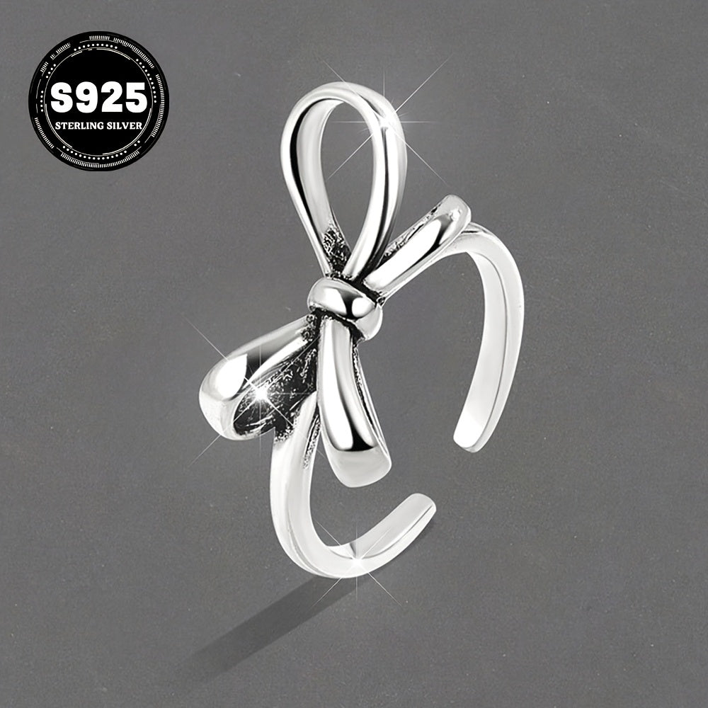 Elevate your style with this elegant sterling silver ring featuring a light bowknot design. Perfect for daily wear and gifting, this adjustable ring is a versatile accessory for any season.