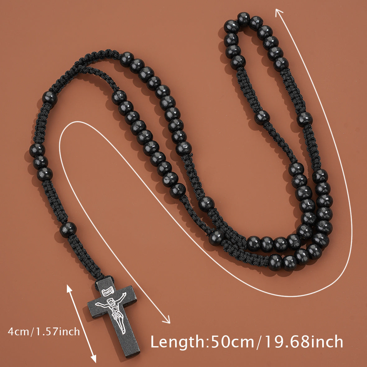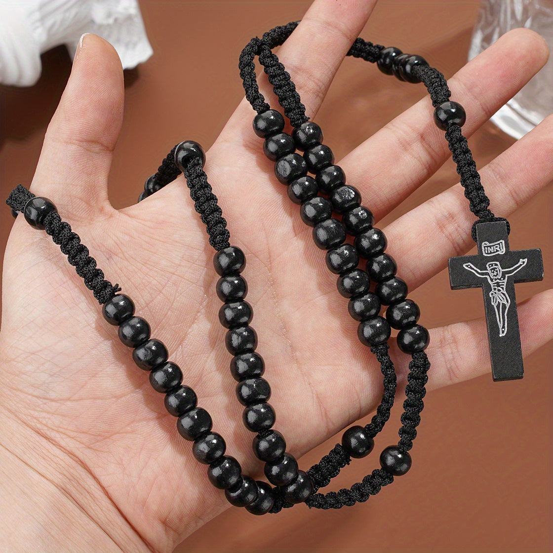 This 10mm Wooden Bead Prayer Rosary features an intricate Jesus Cross pendant, making it perfect for daily worship. It's an ideal gift for family and friends all year round.