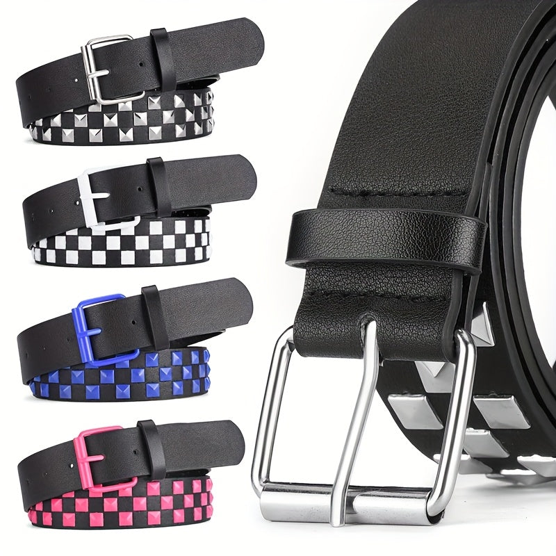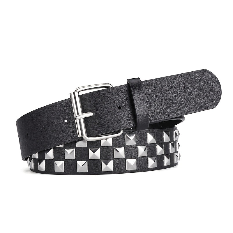 Add a touch of punk style to your outfit with this Y2K belt featuring square bead rivet detail and a metal pyramid buckle. Made from faux leather, this accessory is perfect for men and women looking to make a fashion statement.