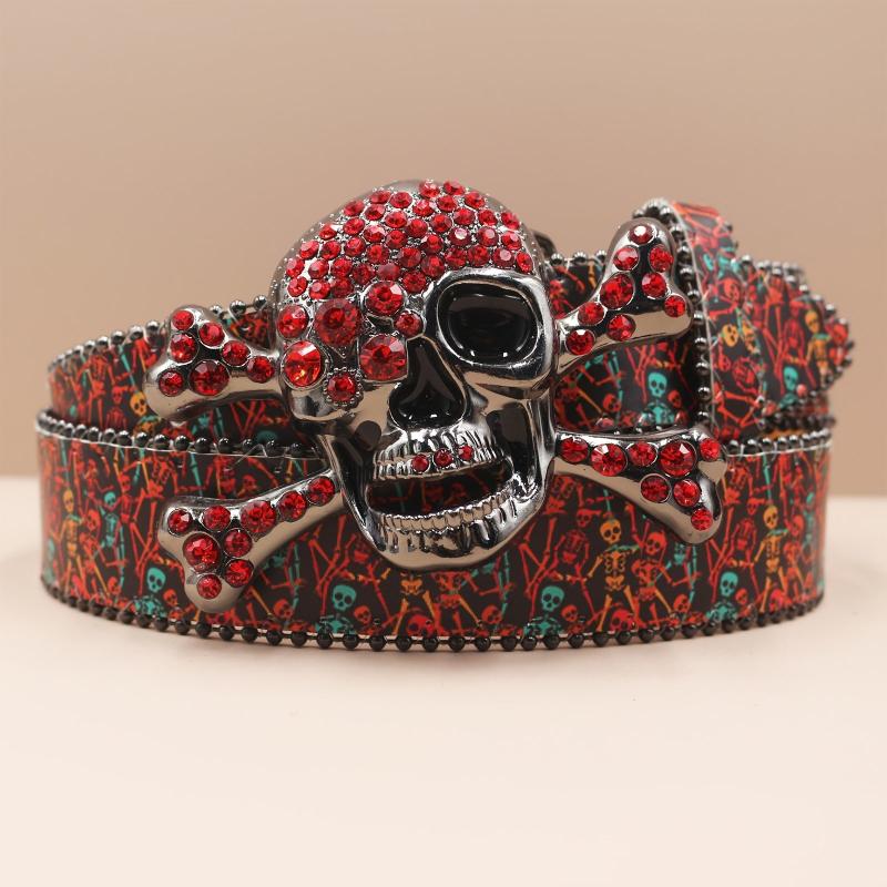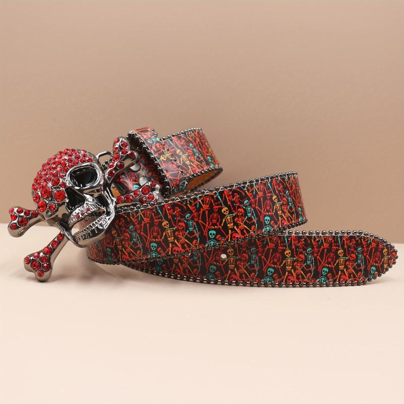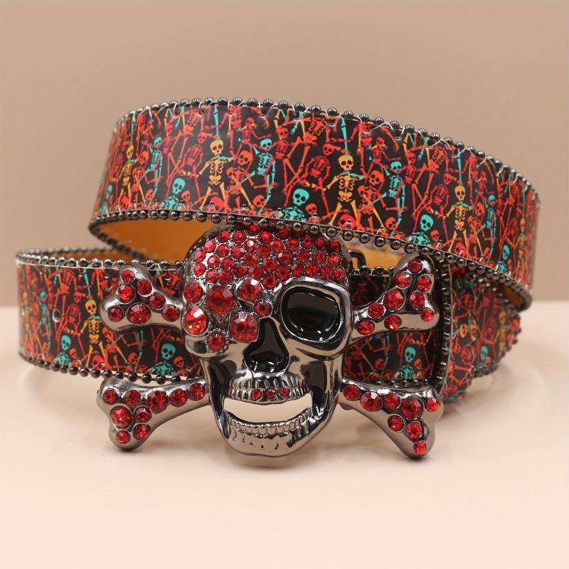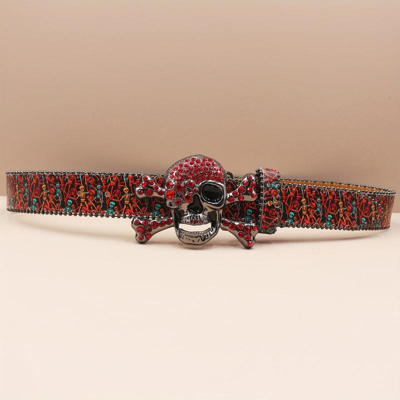 Add a touch of vintage Y2K style to your outfit with this stylish skull rhinestone belt. It features a western-inspired design with faux leather and a sparkling buckle adorned with a colorful skull and crossbones motif.