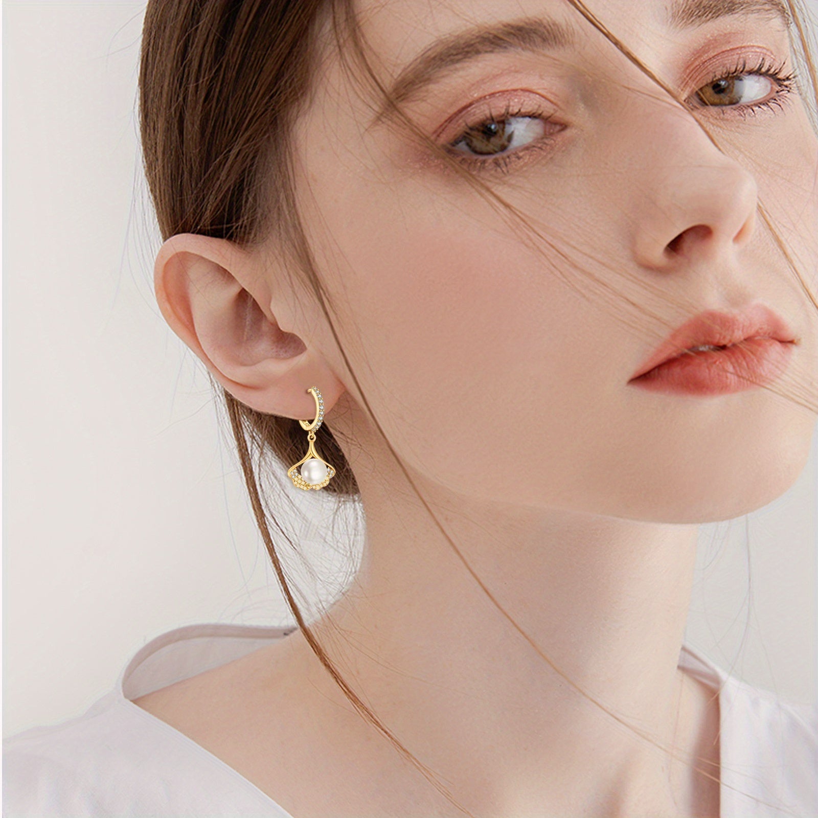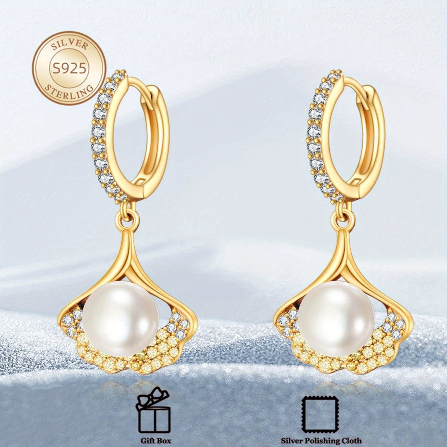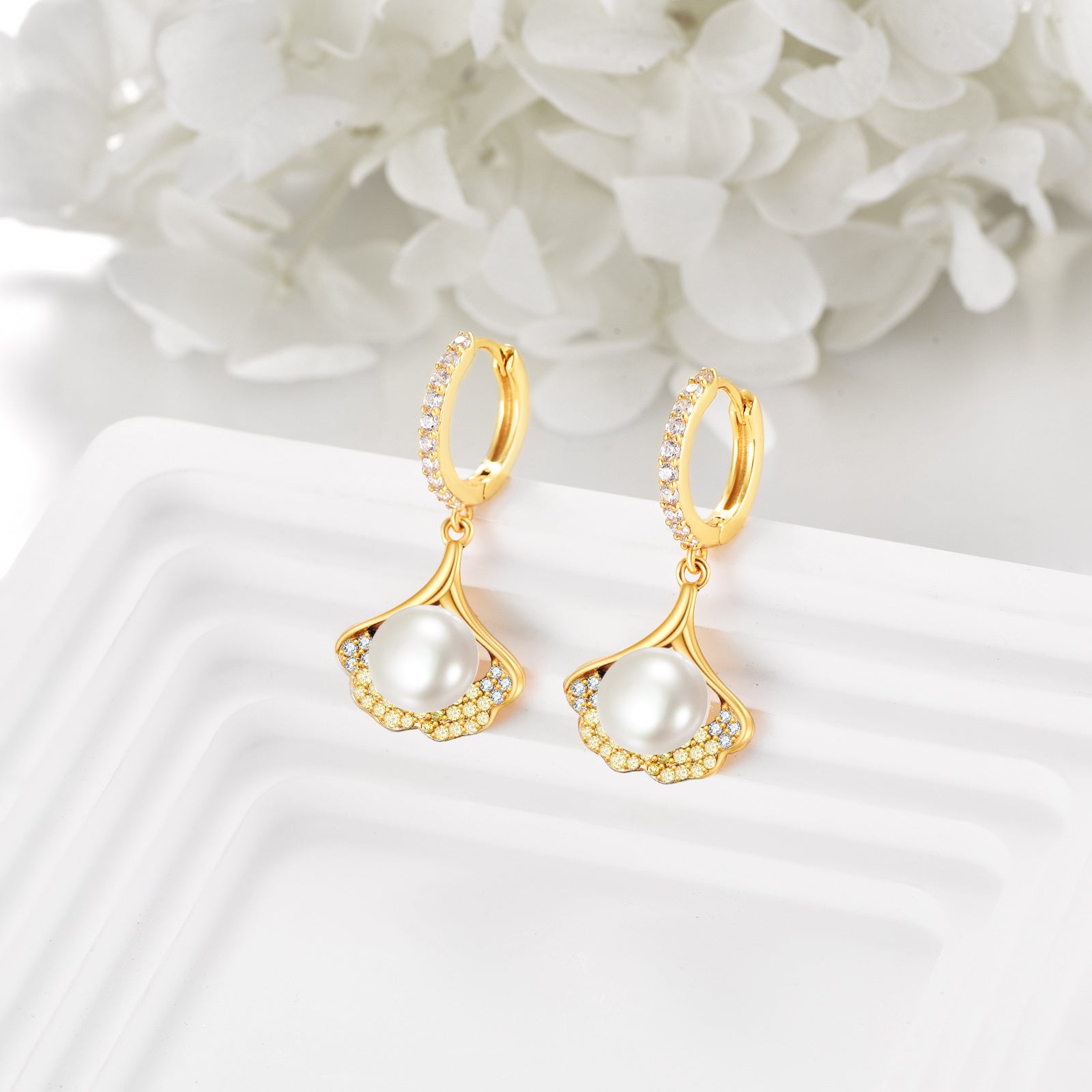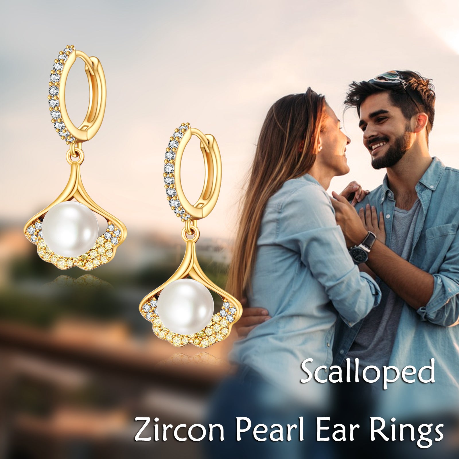 These elegant fan shaped earrings are made of 925 sterling silver and feature inset freshwater pearls. They weigh 3.5g and are suitable for both women and men.