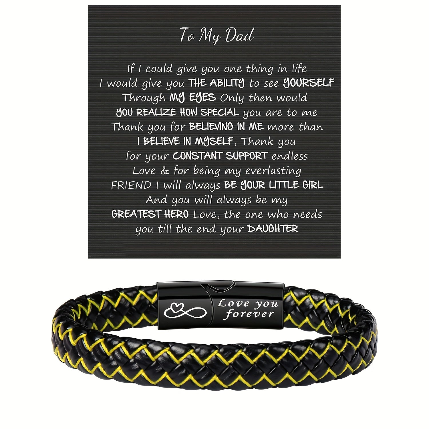 Show your dad how much you care with this heartfelt bracelet featuring a heart pendant with 'To My Dad' inscription. Perfect gift for Father's Day, graduation, Thanksgiving, birthdays, or any occasion.