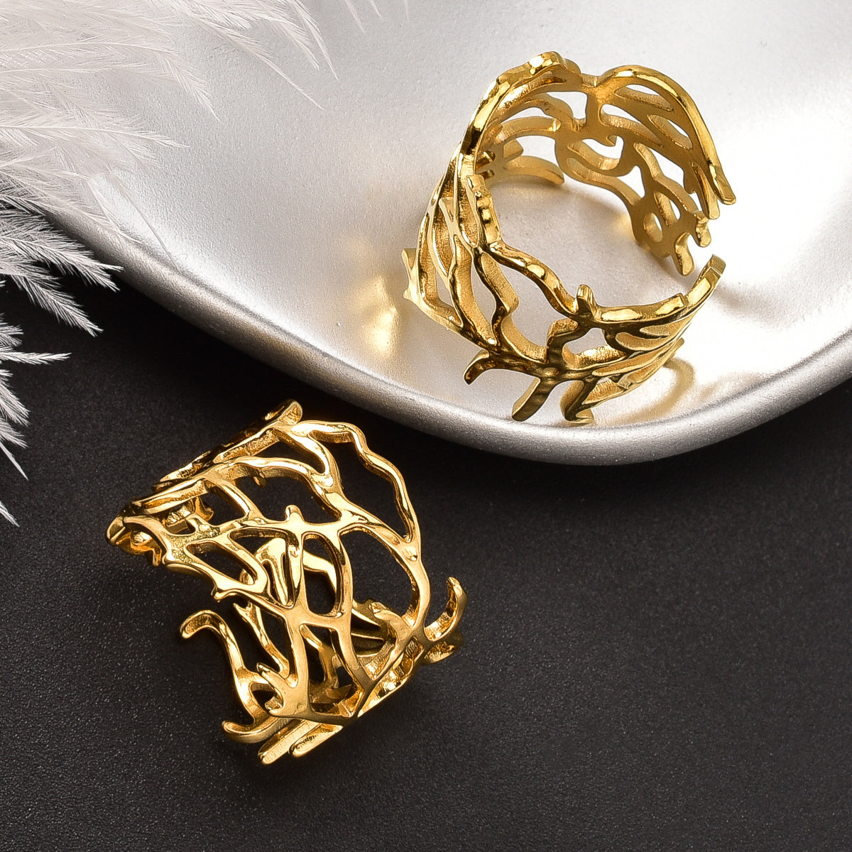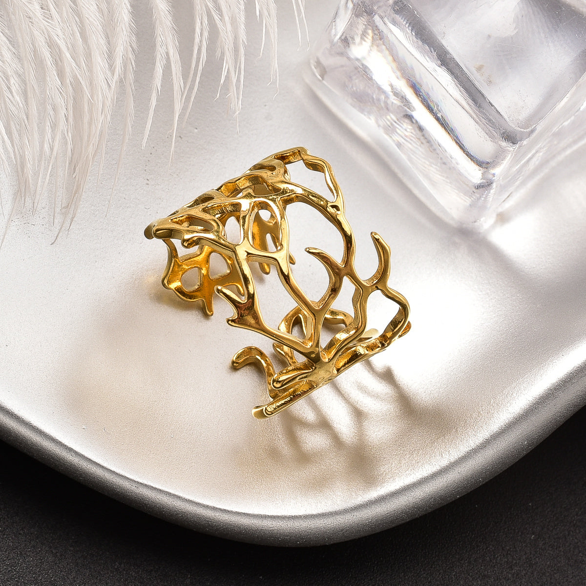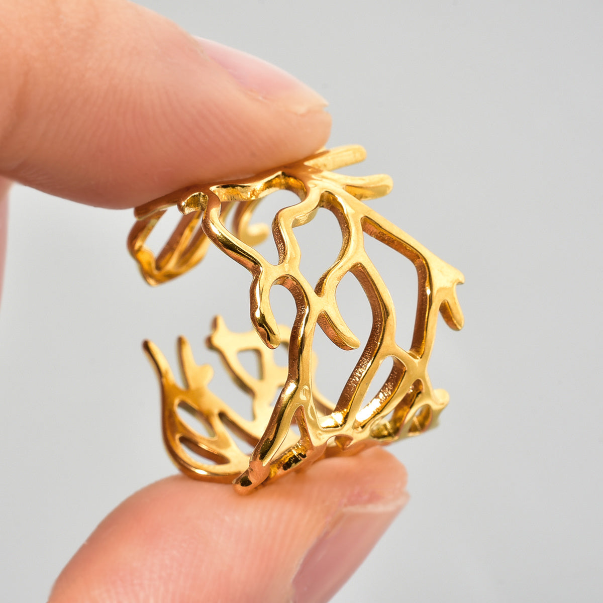 Add a touch of edgy punk style to your look with this vintage stainless steel ring. Featuring an irregular mesh branch design, this adjustable band is perfect for Christmas, holiday parties, and casual attire.