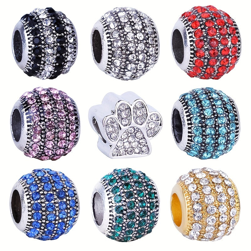 Add a touch of sparkle to your jewelry with these silvery plated rhinestone ball and dog paw beads. Perfect for bracelets and other accessories.
