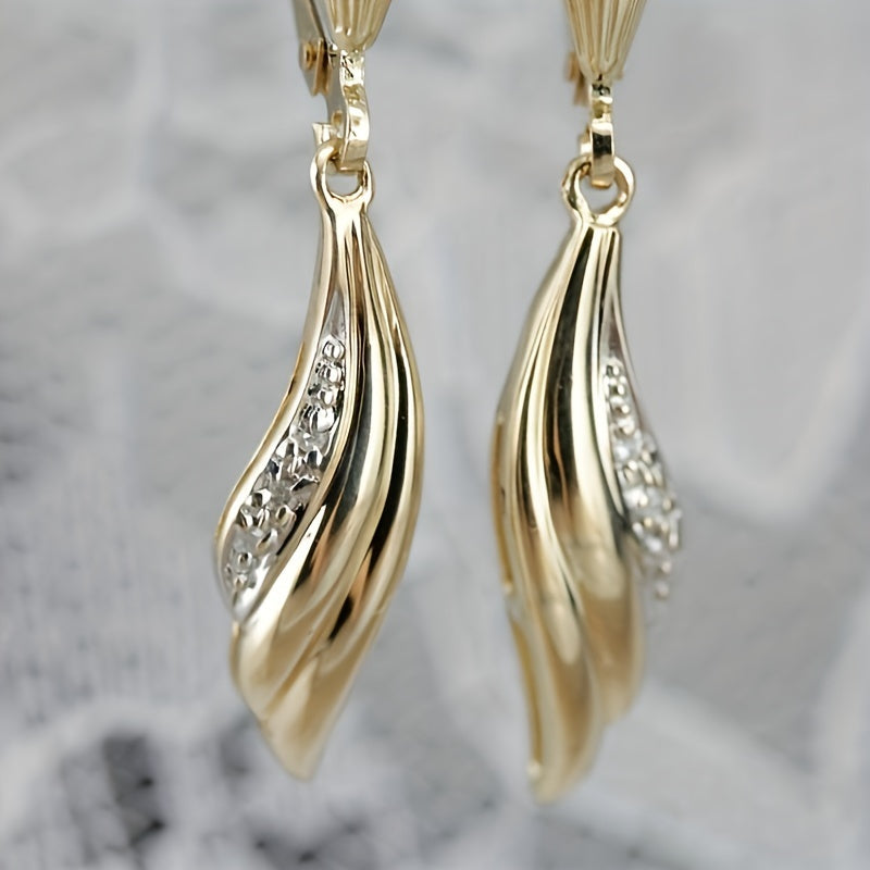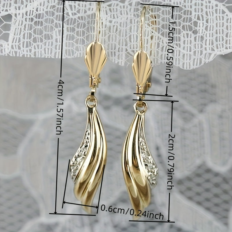 These stylish earrings are perfect for a wedding, party, or banquet. Made with synthetic zirconia stones and nickel plating, these earrings are suitable for all seasons.