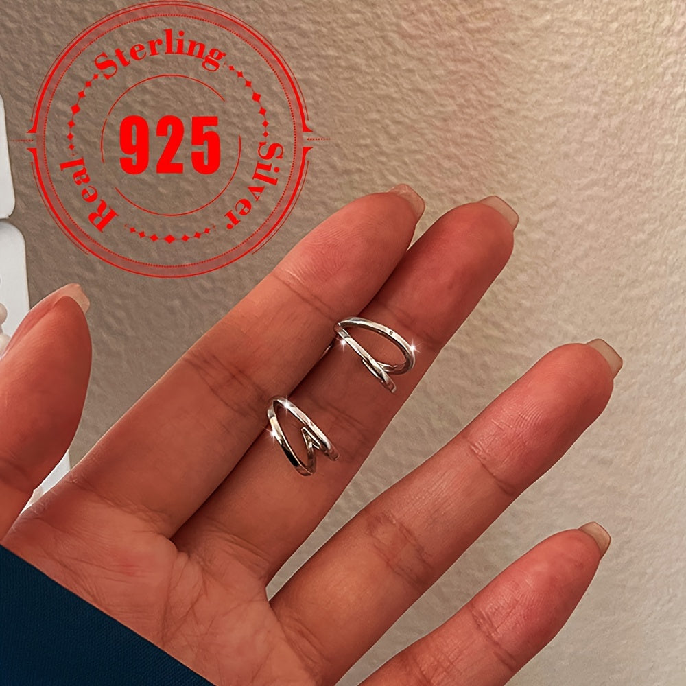 1 73g 2pcs S925 Silver Double Line Earrings for Daily Wear