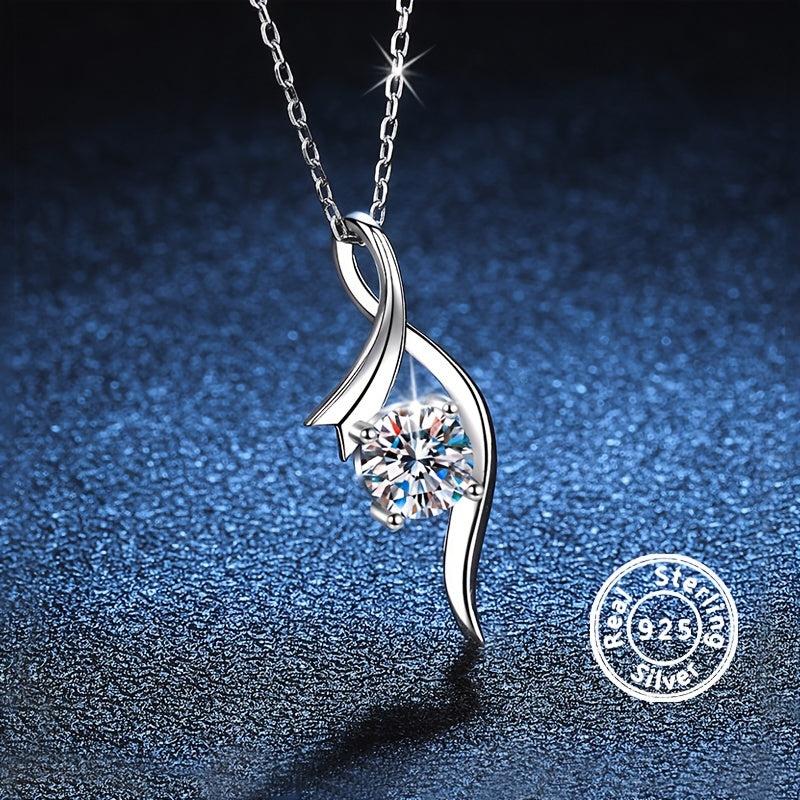 1 Carat Moissanite Pendant Necklace 925 Sterling Silver 18K Golden Plated