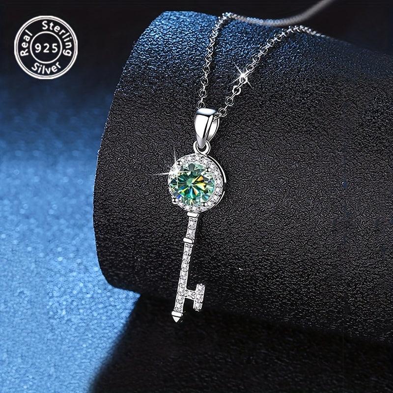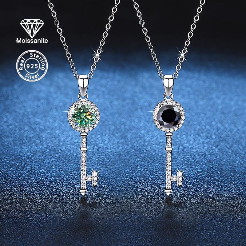 Elegant and stunning 925 sterling silver necklace featuring a 1 carat moissanite pendant. Perfect for parties, vacations, Christmas, Halloween, birthdays, and anniversaries.