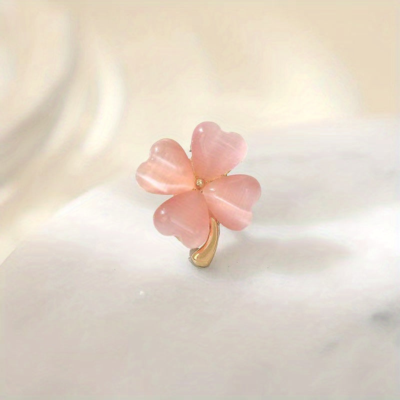 This elegant brooch features a cat's eye lucky four leaf clover design, perfect for adding a touch of charm to any outfit. It can be worn on collars, jackets, and more.