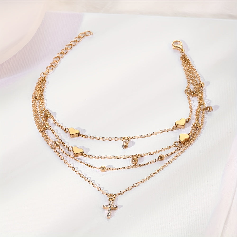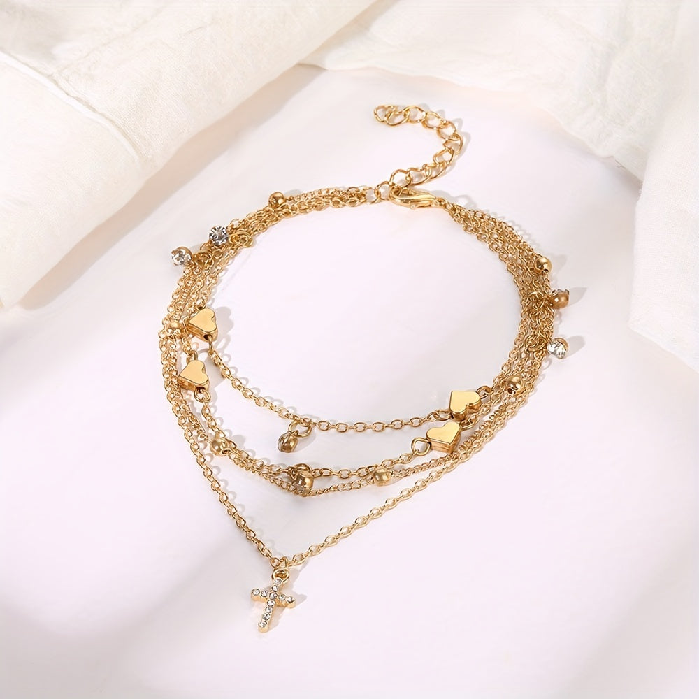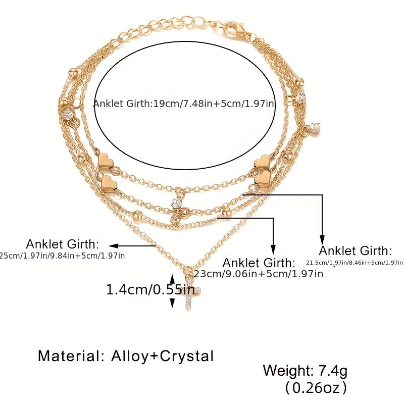 Add a touch of elegance to your ankle with this chain anklet featuring a love rhinestone cross pendant. Perfect for everyday wear or special occasions.