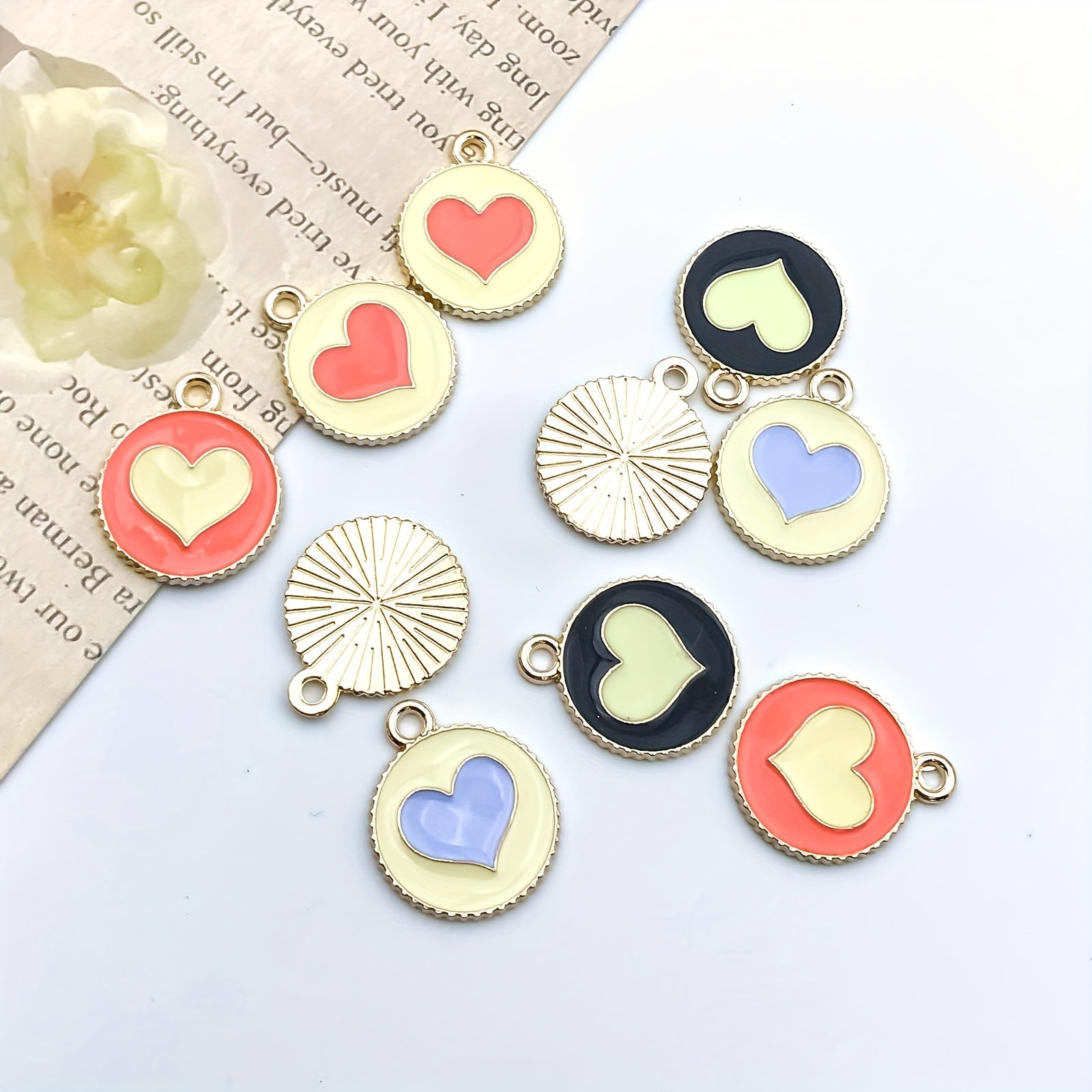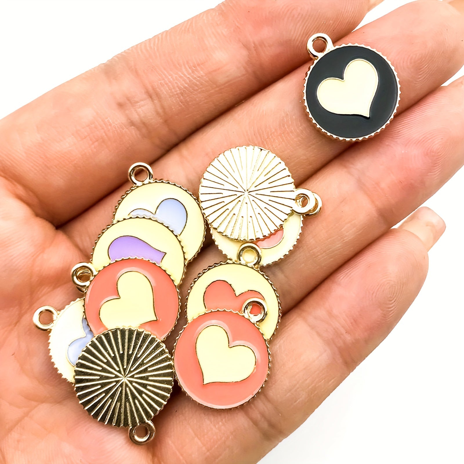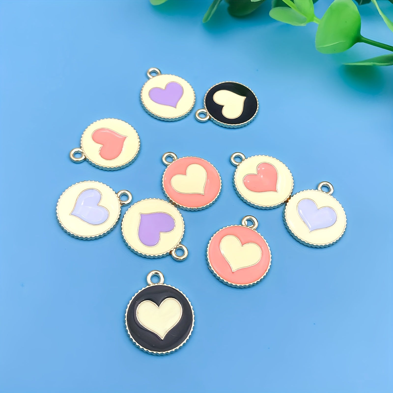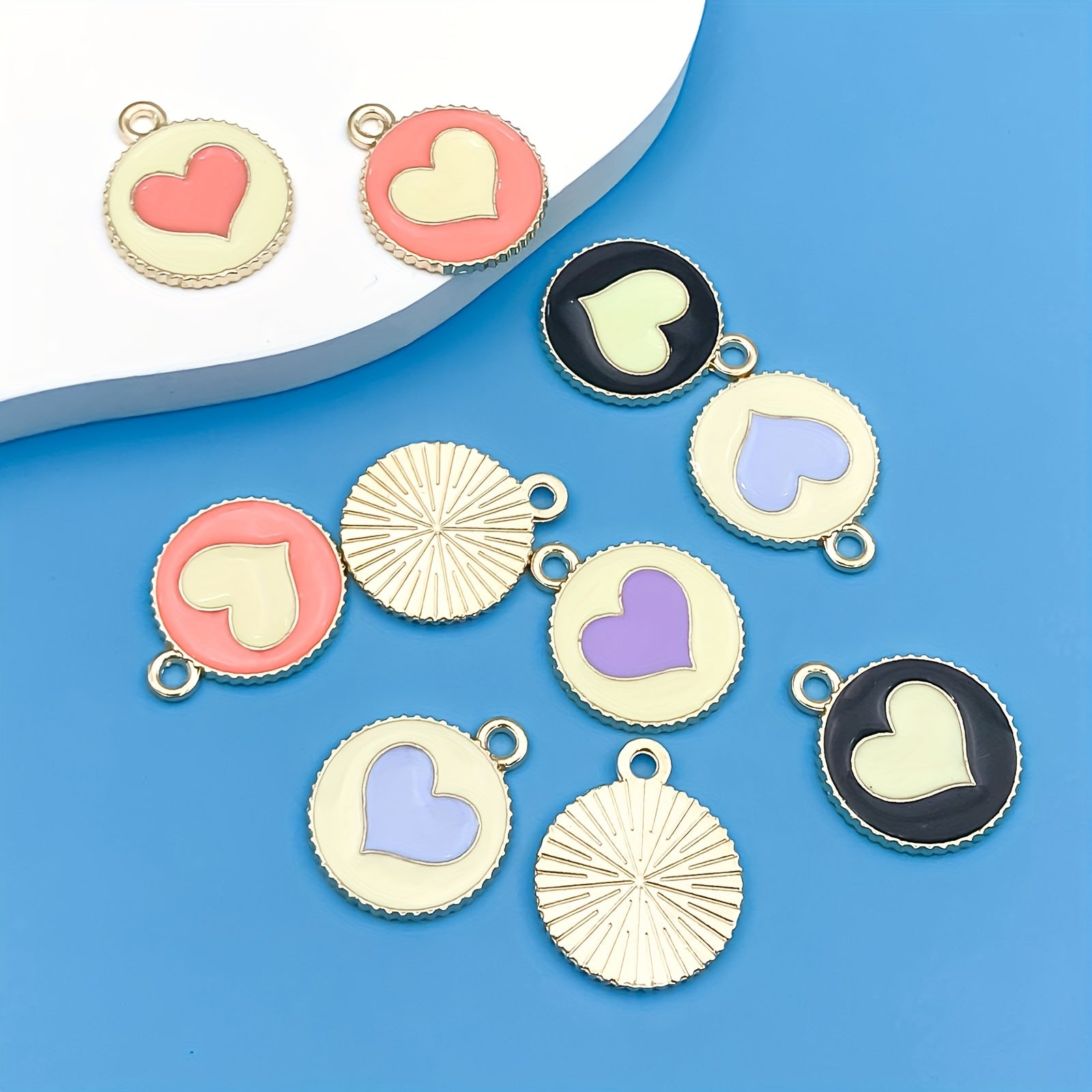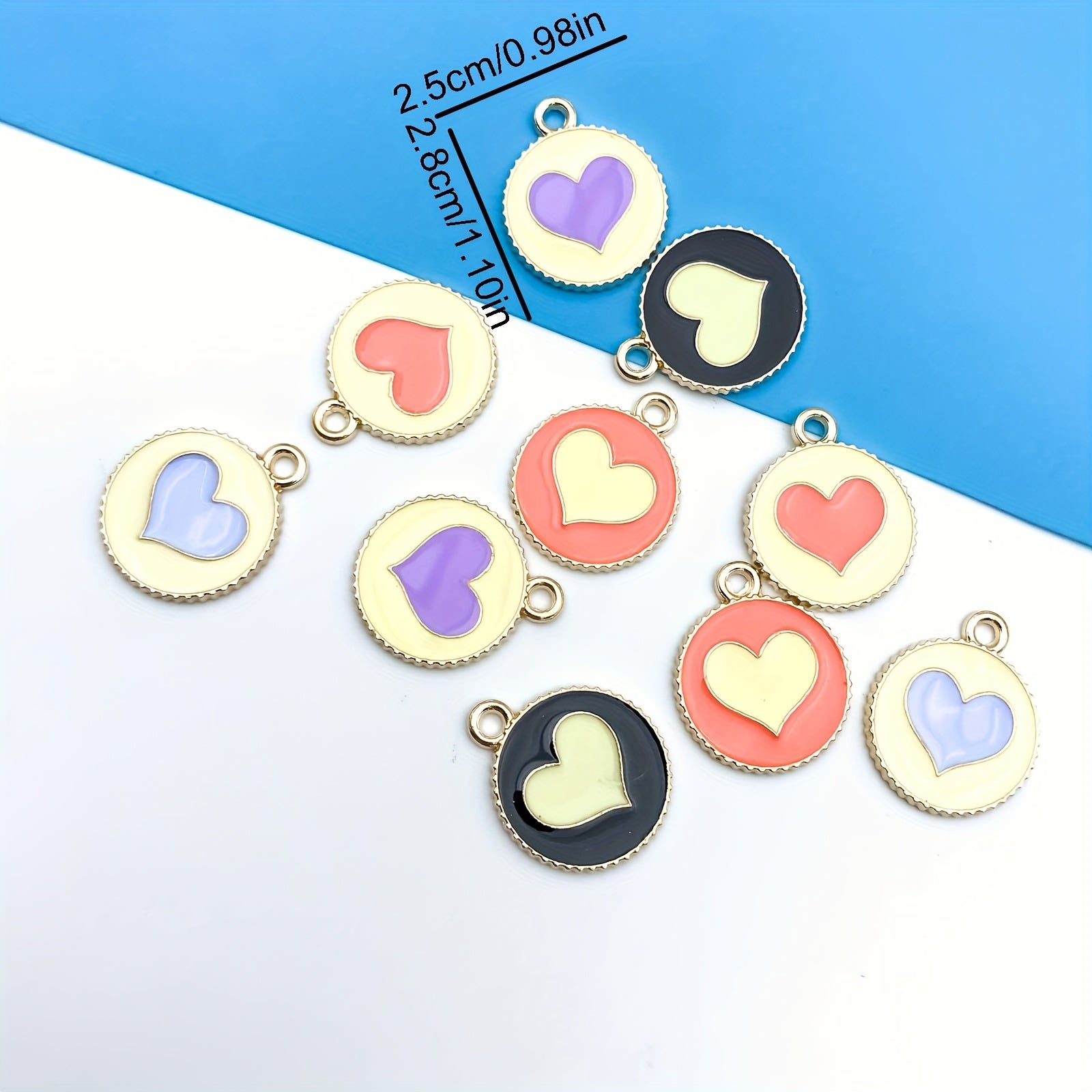 Create your own unique jewelry with this set of 10 enamel dripping oil love circle pendants. Perfect for necklaces, bracelets, and earrings.