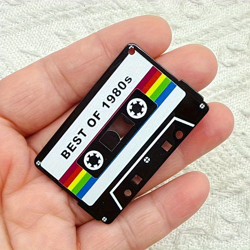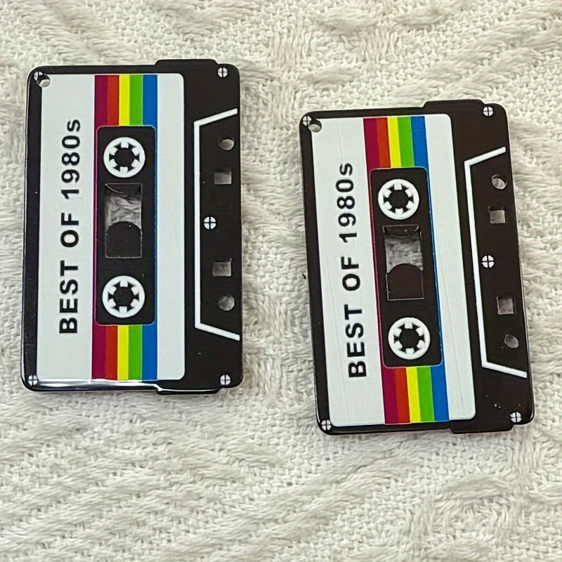 Add a touch of retro style to your jewelry projects with these colorful acrylic pendants shaped like vintage cassette tapes featuring stripes and geometric patterns. Perfect for creating unique and eye-catching accessories.