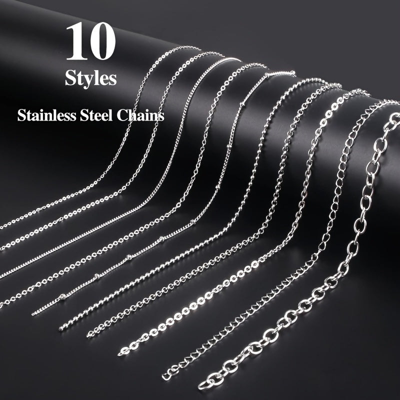 Create stylish necklaces, bracelets, shoe charms & more with these durable stainless steel chains. Includes 10 unique styles for endless design possibilities.