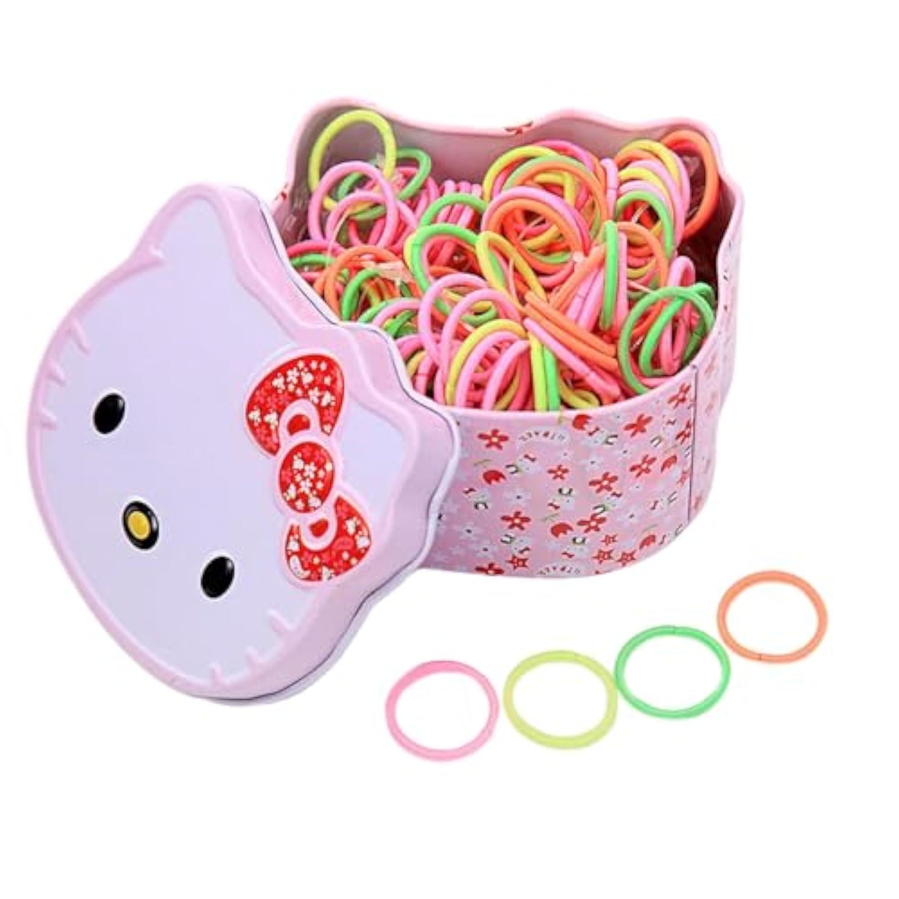 Get this cute combo of 100 elastic hair bands along with a tin kitty box for easy storage. These accessories are perfect for everyday use or special occasions.