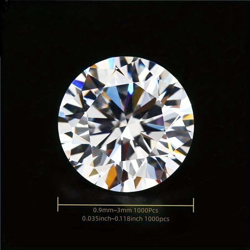 Enhance your jewelry creations with this set of 1000 round machine-cut zirconia gemstones. Each gemstone measures between 0.9mm and 3mm in diameter.