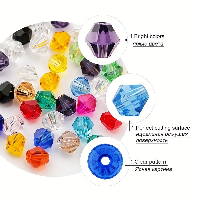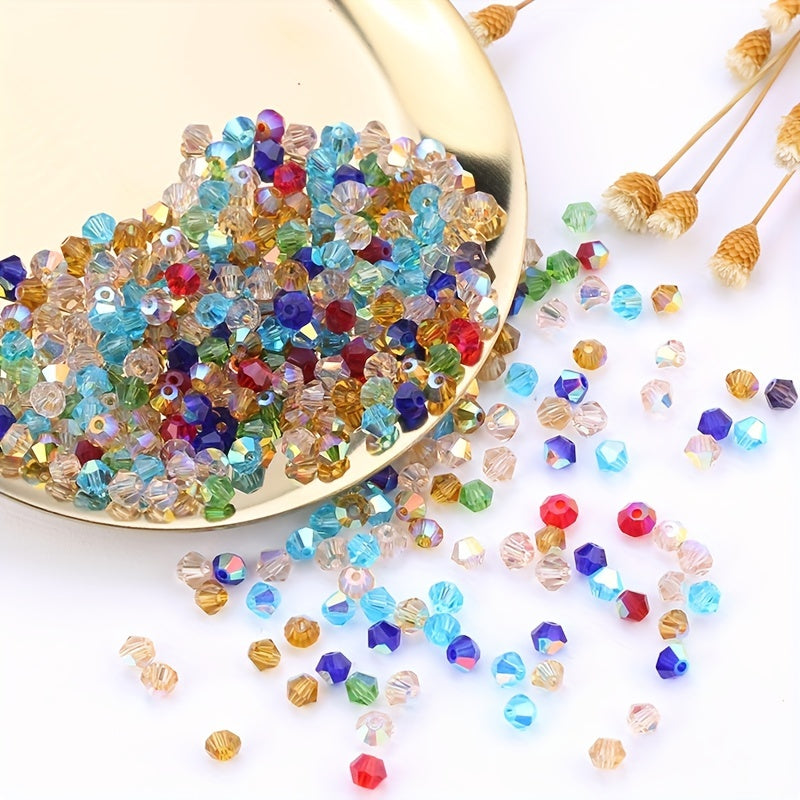 Enhance your DIY jewelry projects with this set of 1000 colorful 4mm bicone crystal beads. These glass beads are perfect for creating stunning bracelets and other accessories.