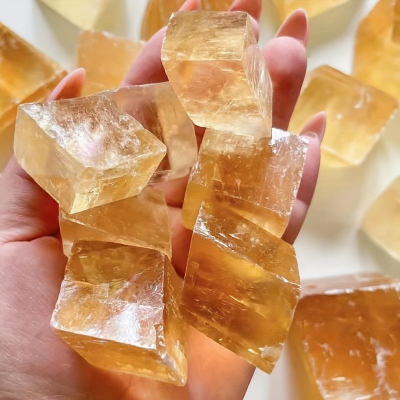 100g 200g Natural Topaz Calcite Cube Rough Honey Calcite Specimen