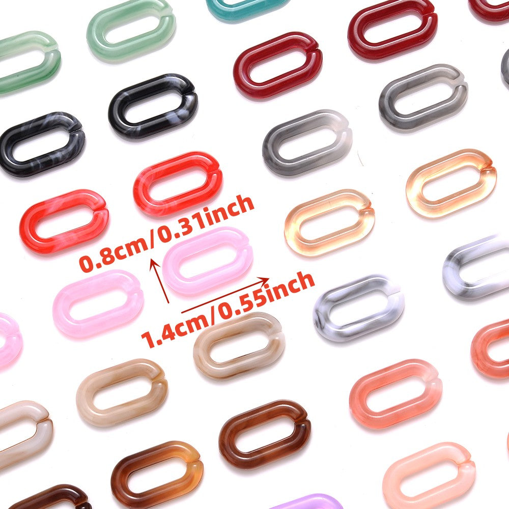 This pack includes 100 colorful acrylic chain beads measuring 14x8mm, perfect for creating bracelets, necklaces, and rings. Add a pop of color to your jewelry designs with these geometric link connector beads.