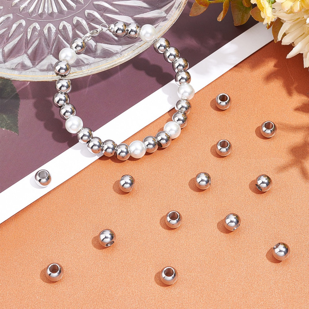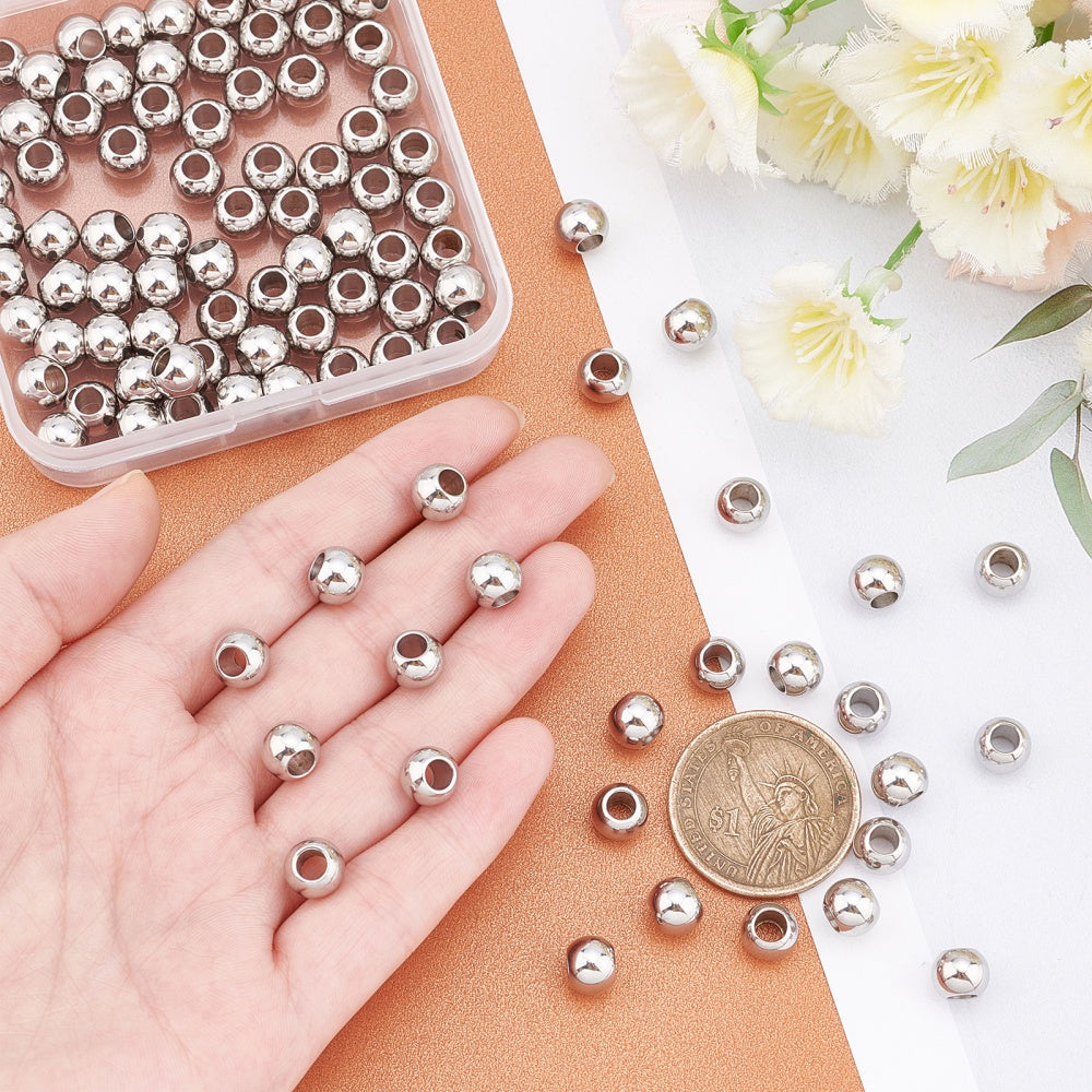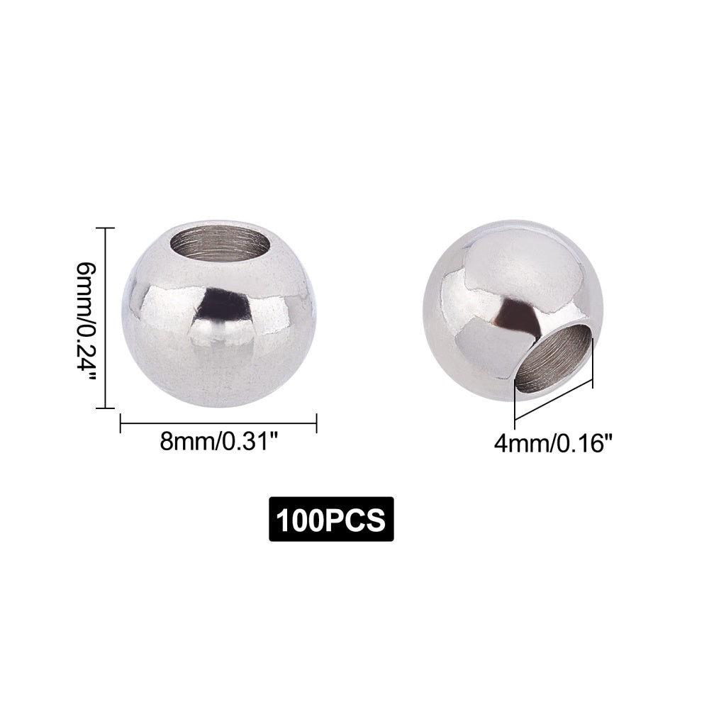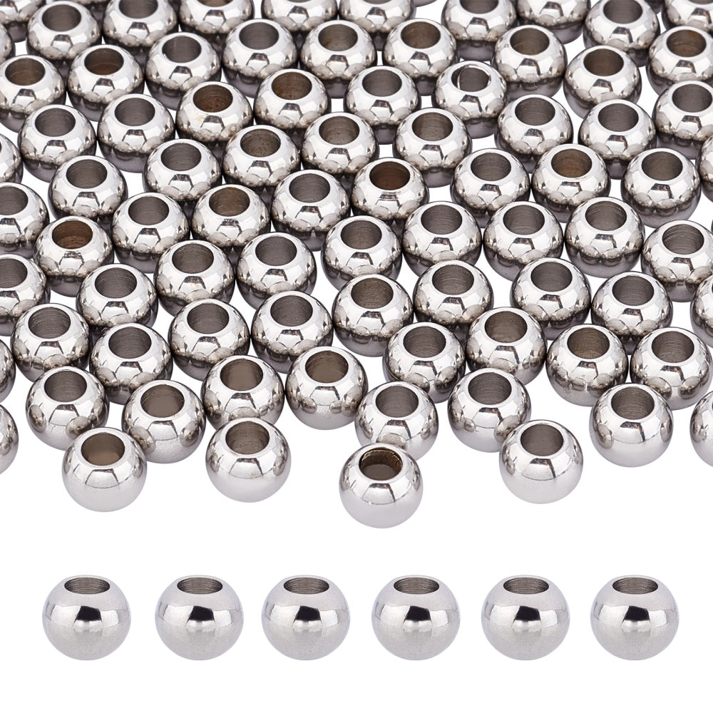 100pcs 8mm Stainless Steel Spacer Beads Round Large Hole Beads Metal Rondelle