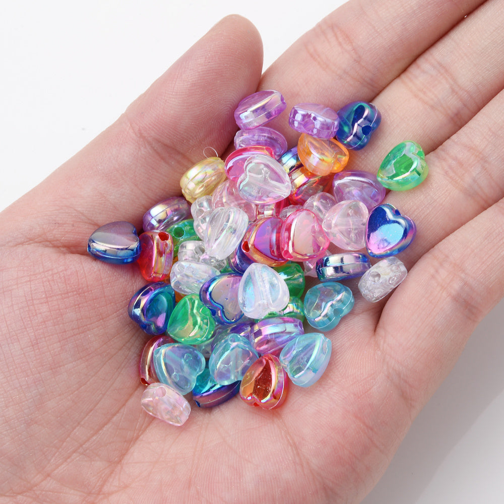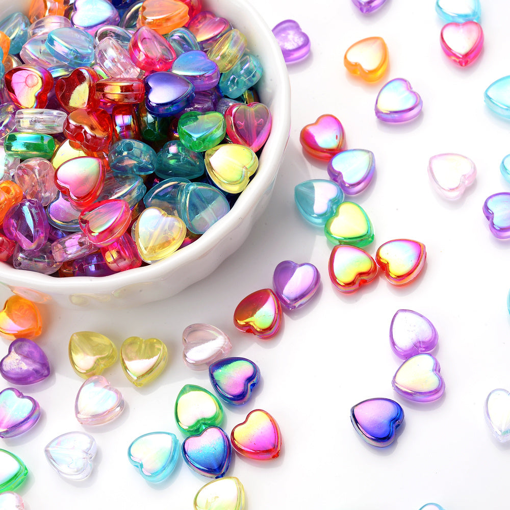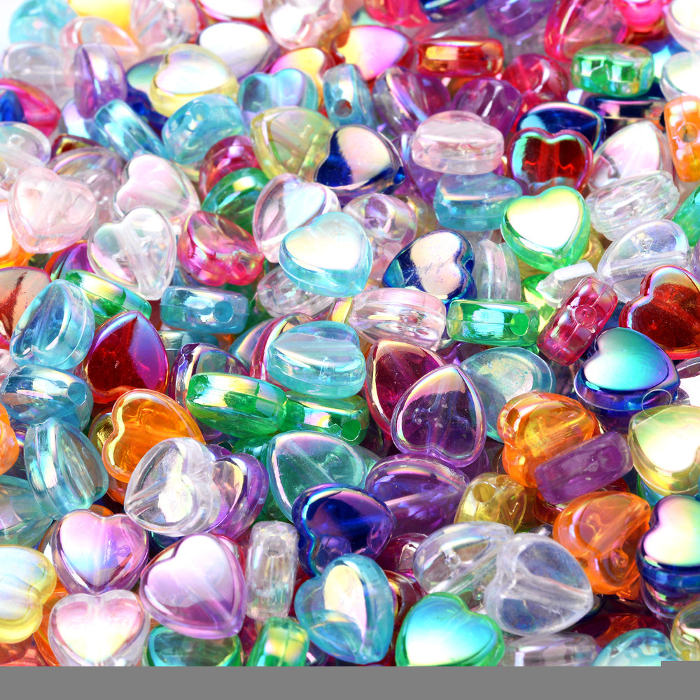 100pcs AB Acrylic Heart Beads Multicolor Mix for Jewelry Making