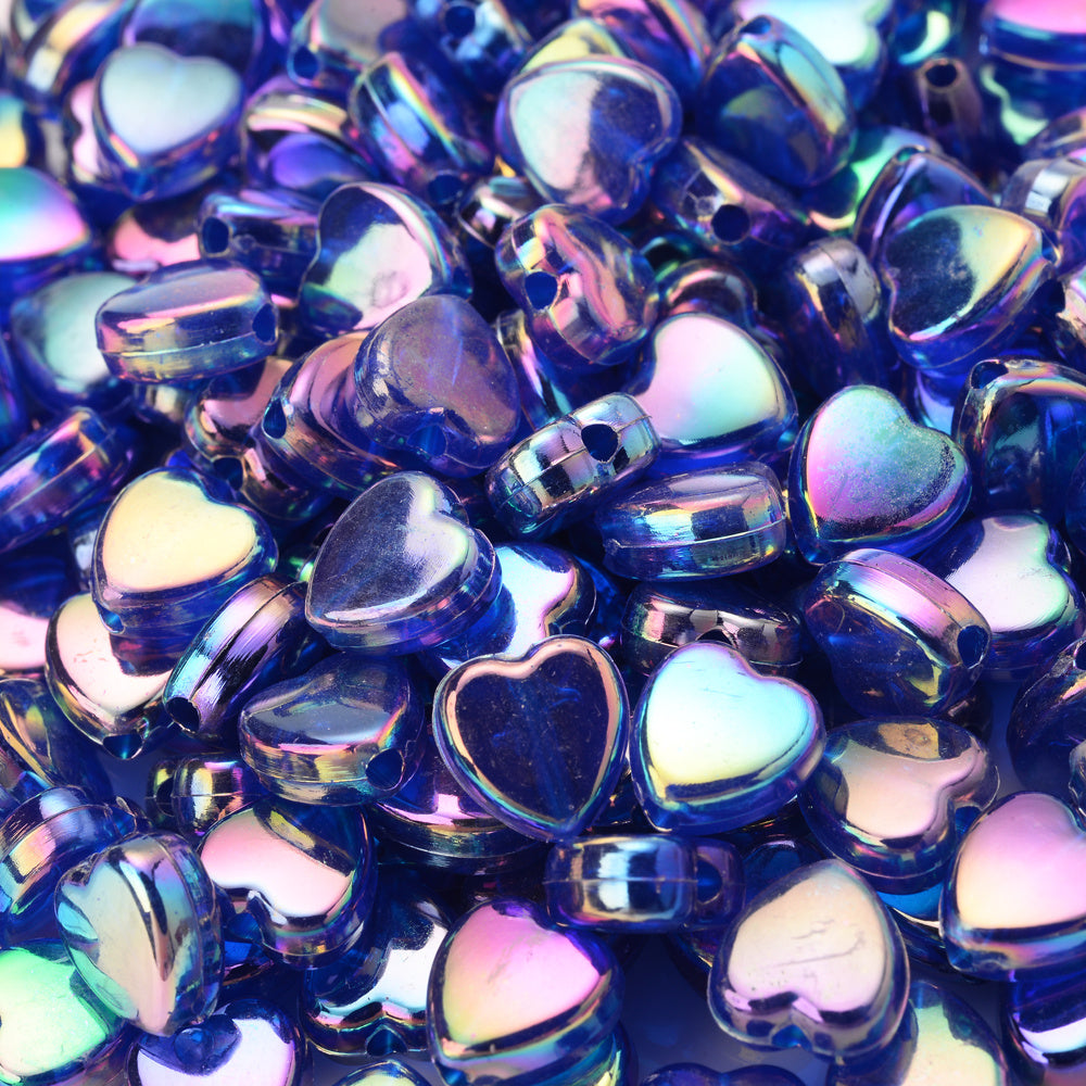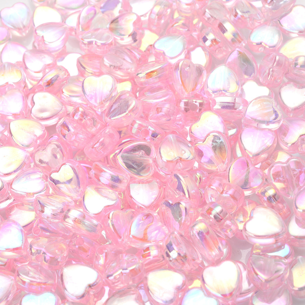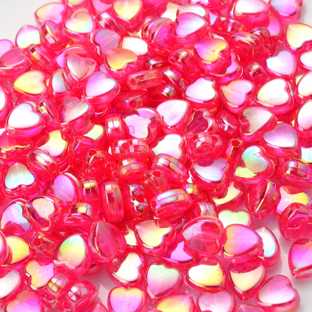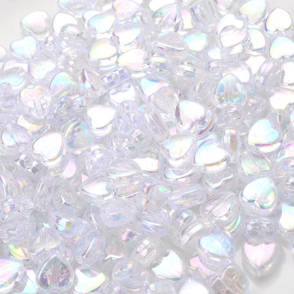 100pcs AB Acrylic Heart Beads Multicolor Mix for Jewelry Making