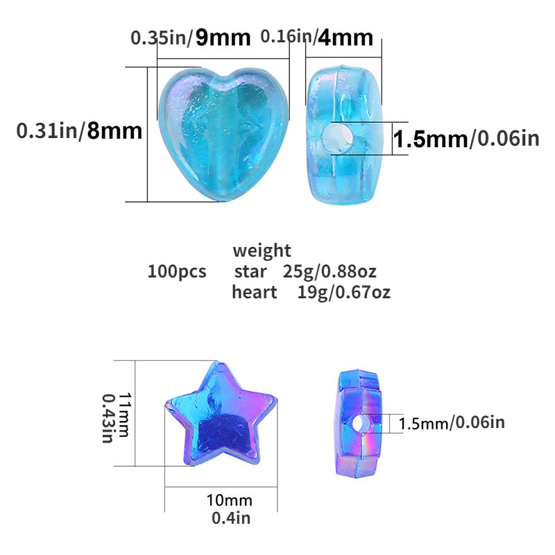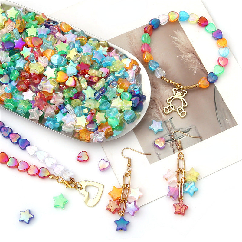Get creative with this 100PCS set of colorful acrylic pentagram and heart beads, perfect for DIY bracelet making and jewelry accessories. Add a pop of color to your designs!