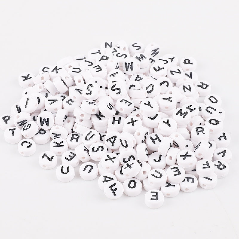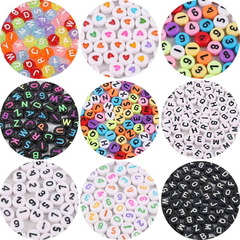 Create your own unique jewelry with this pack of 100 acrylic flat beads. The set includes peach heart and English alphabet beads for endless design possibilities.
