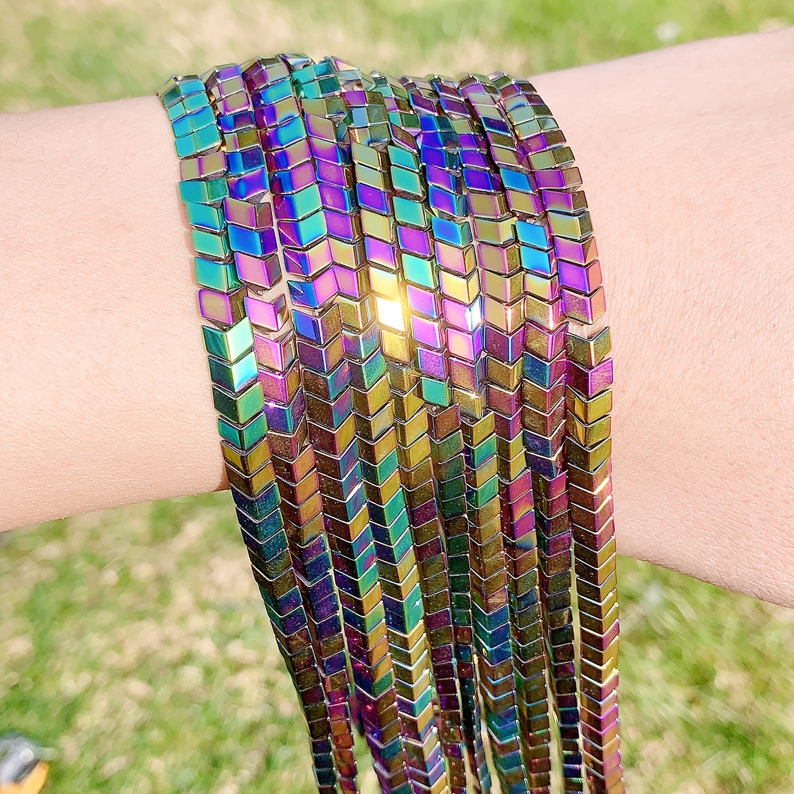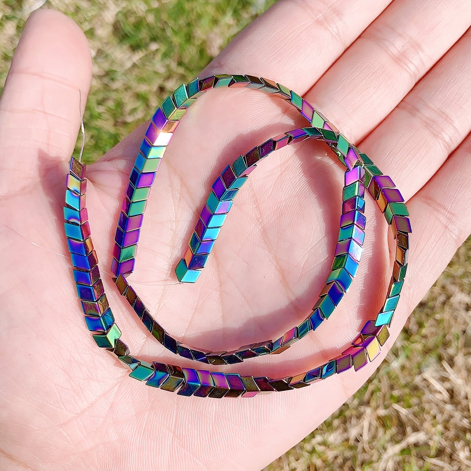 Get this set of 100 arrow-shaped natural rainbow hematite loose stone spacer beads ideal for creating bracelets, necklaces, and other jewelry pieces.