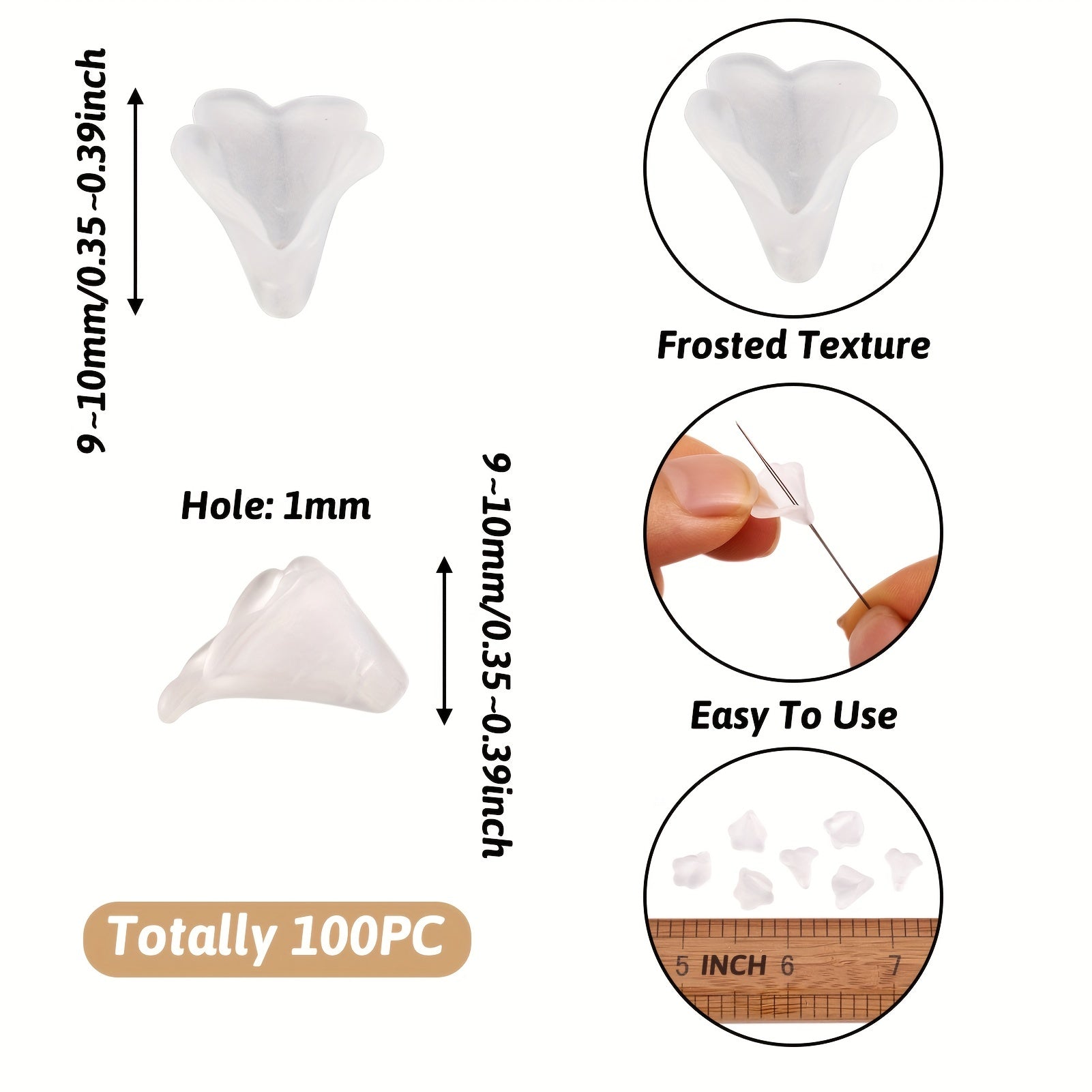 • Package includes 100 pieces of transparent frosted acrylic flower beads caps