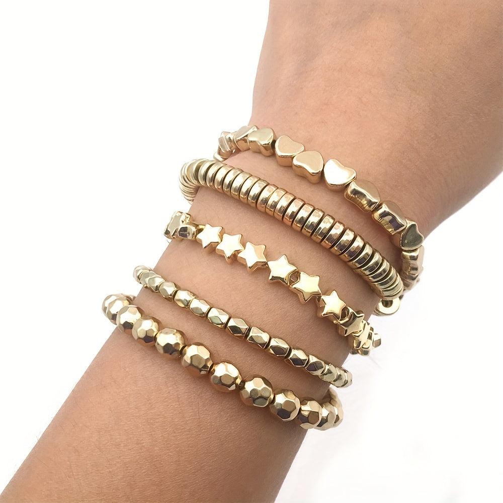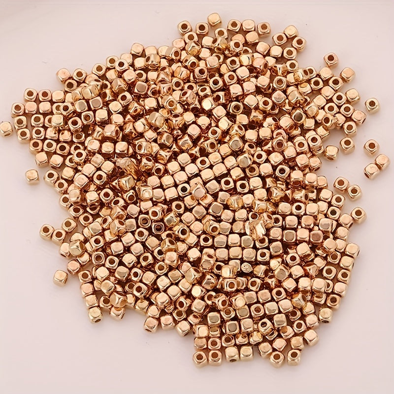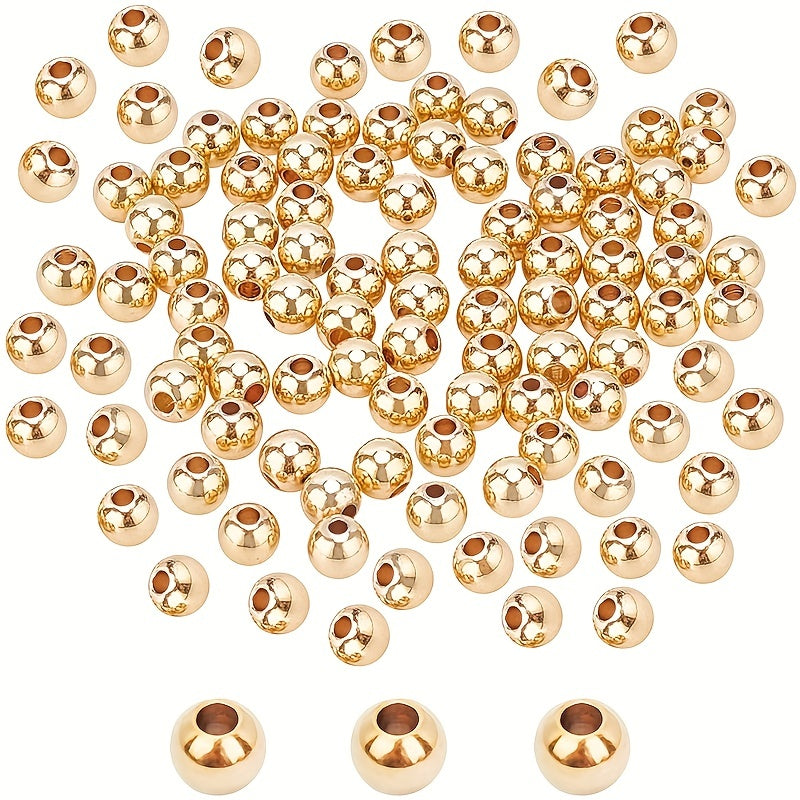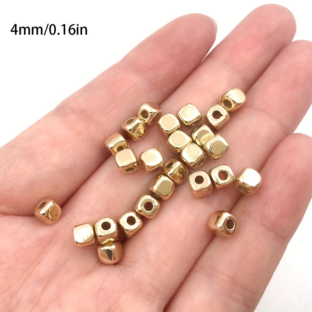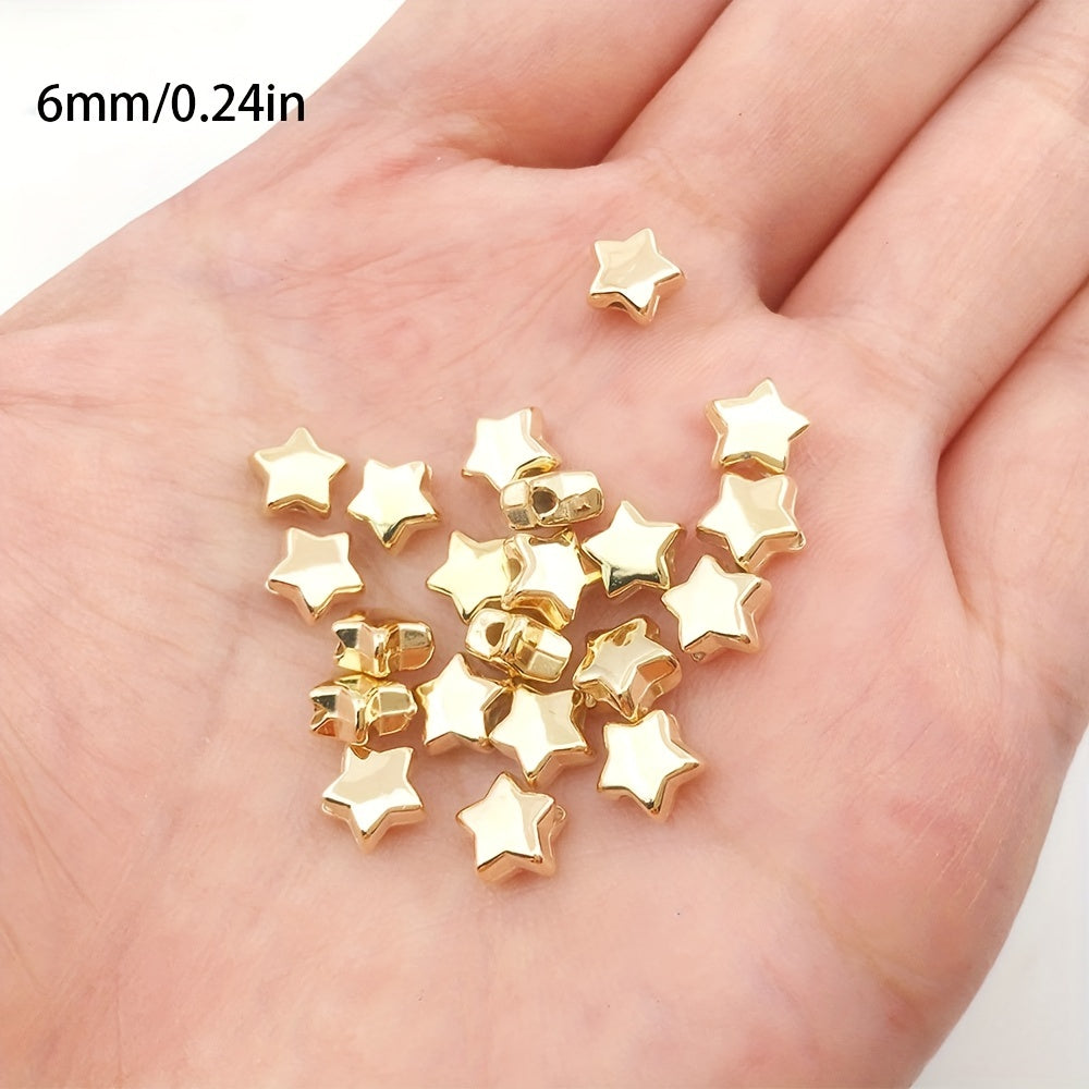 Get 100pcs of golden round, square, star, snowflake shape beads for bracelet jewelry making craft. These smooth loose beads are versatile and perfect for various crafting projects.