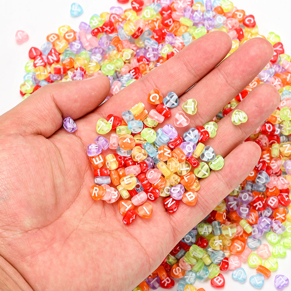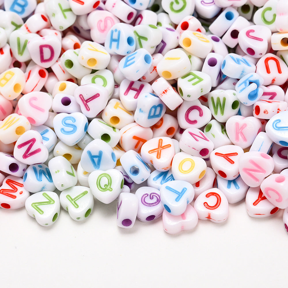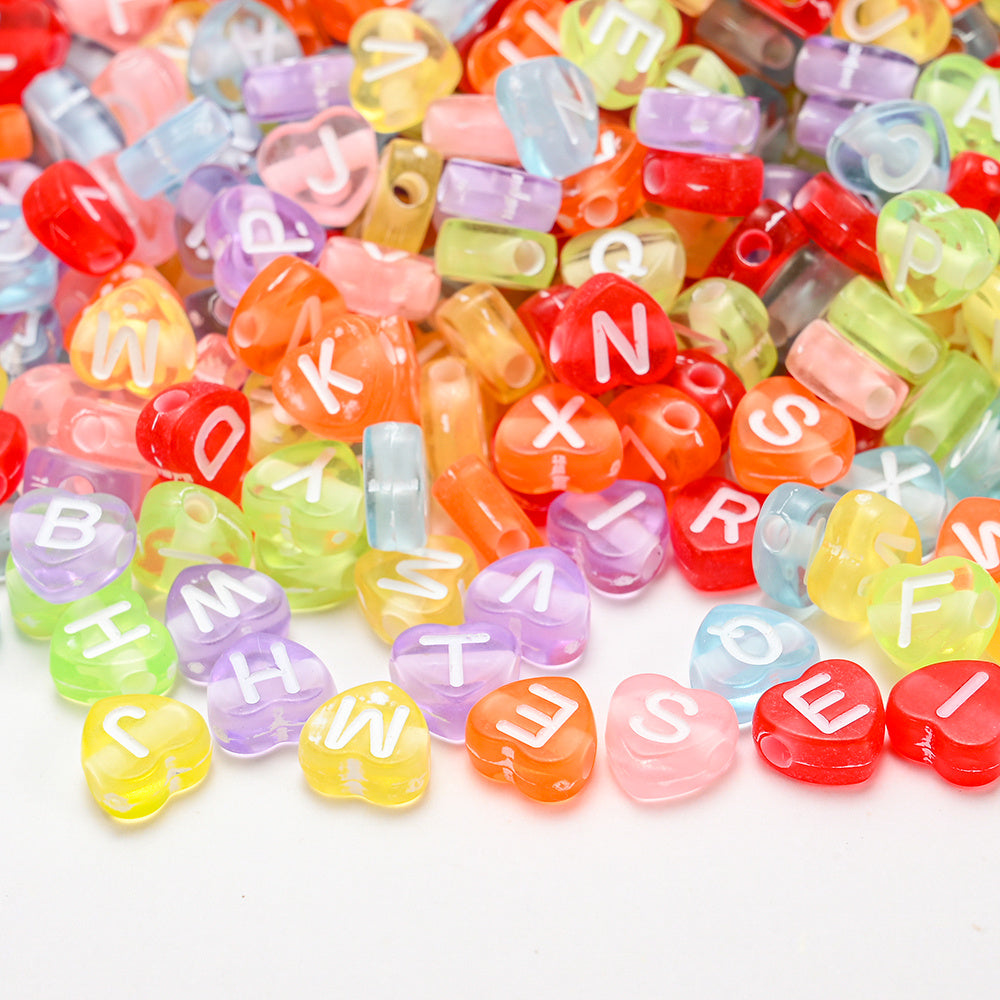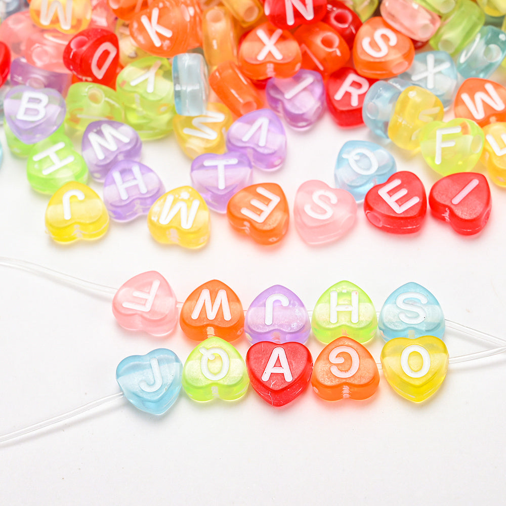 Create beautiful jewelry with these colorful heart-shaped acrylic letter beads. Perfect for DIY projects and crafting.