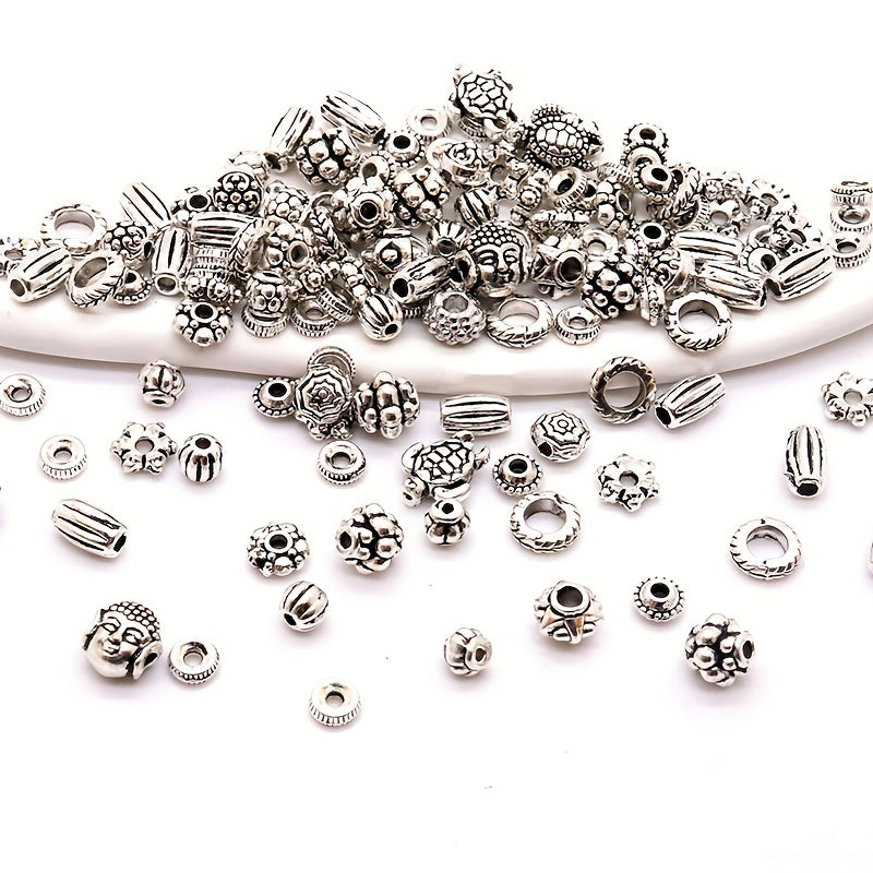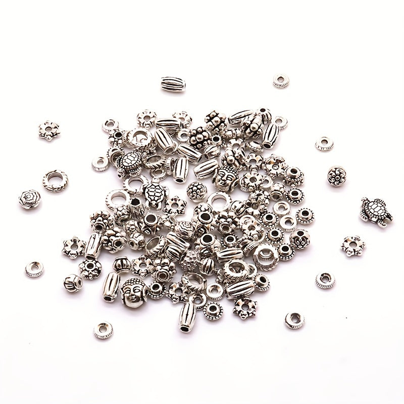 Enhance your jewelry making with this set of 100 vintage silver tube beads. Perfect for DIY bracelets and other crafts.