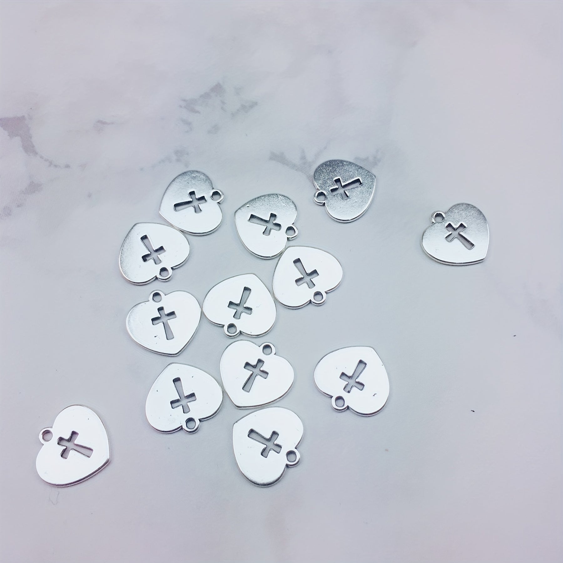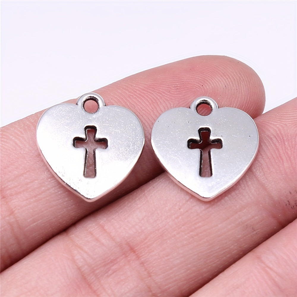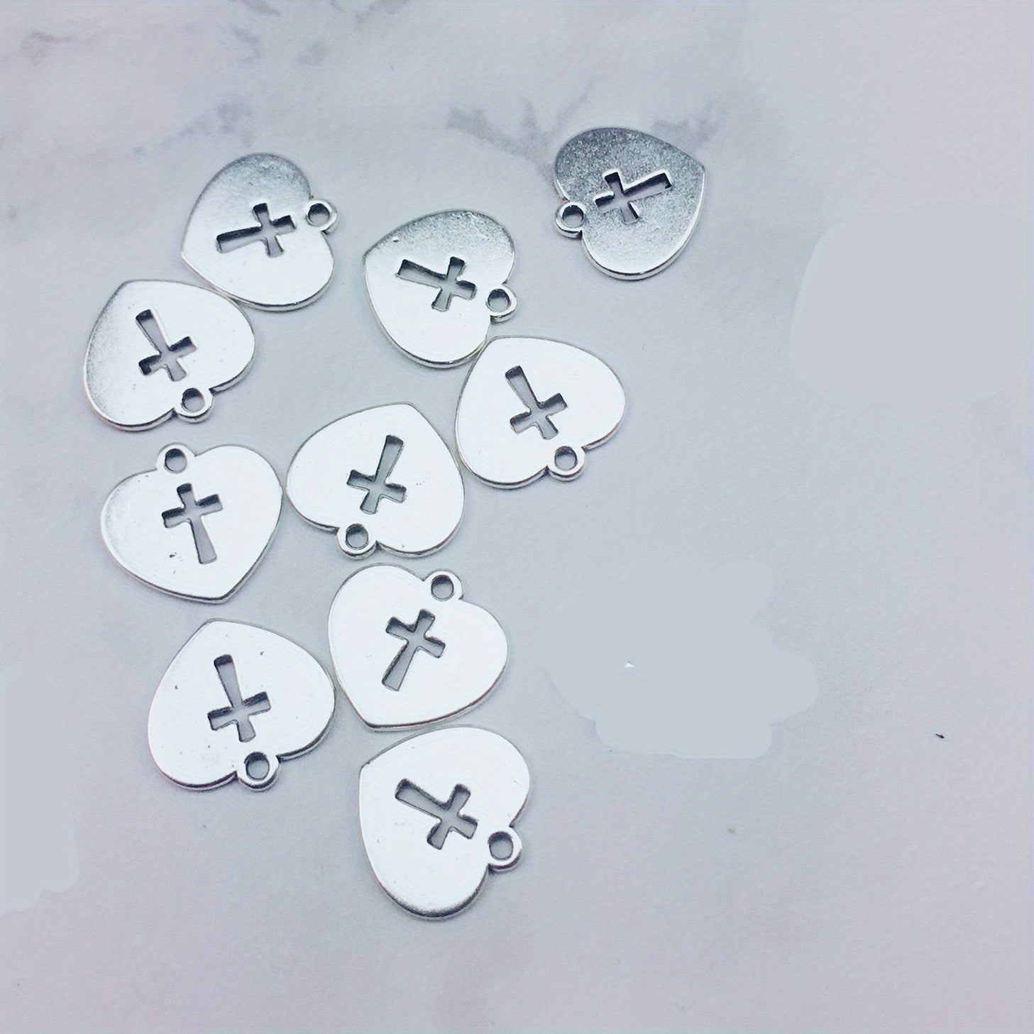 • Set of 10 heart hollow cross charms for DIY jewelry making