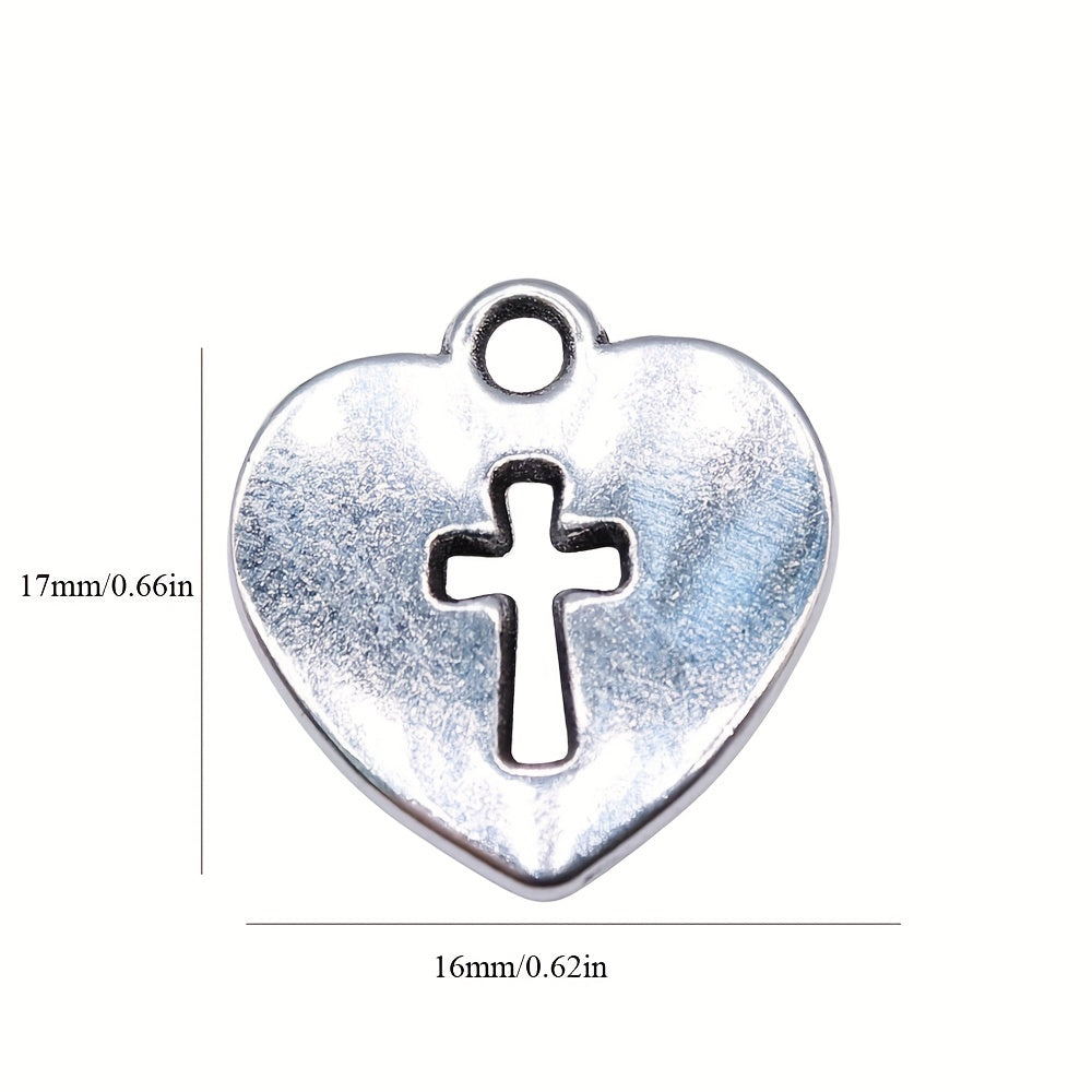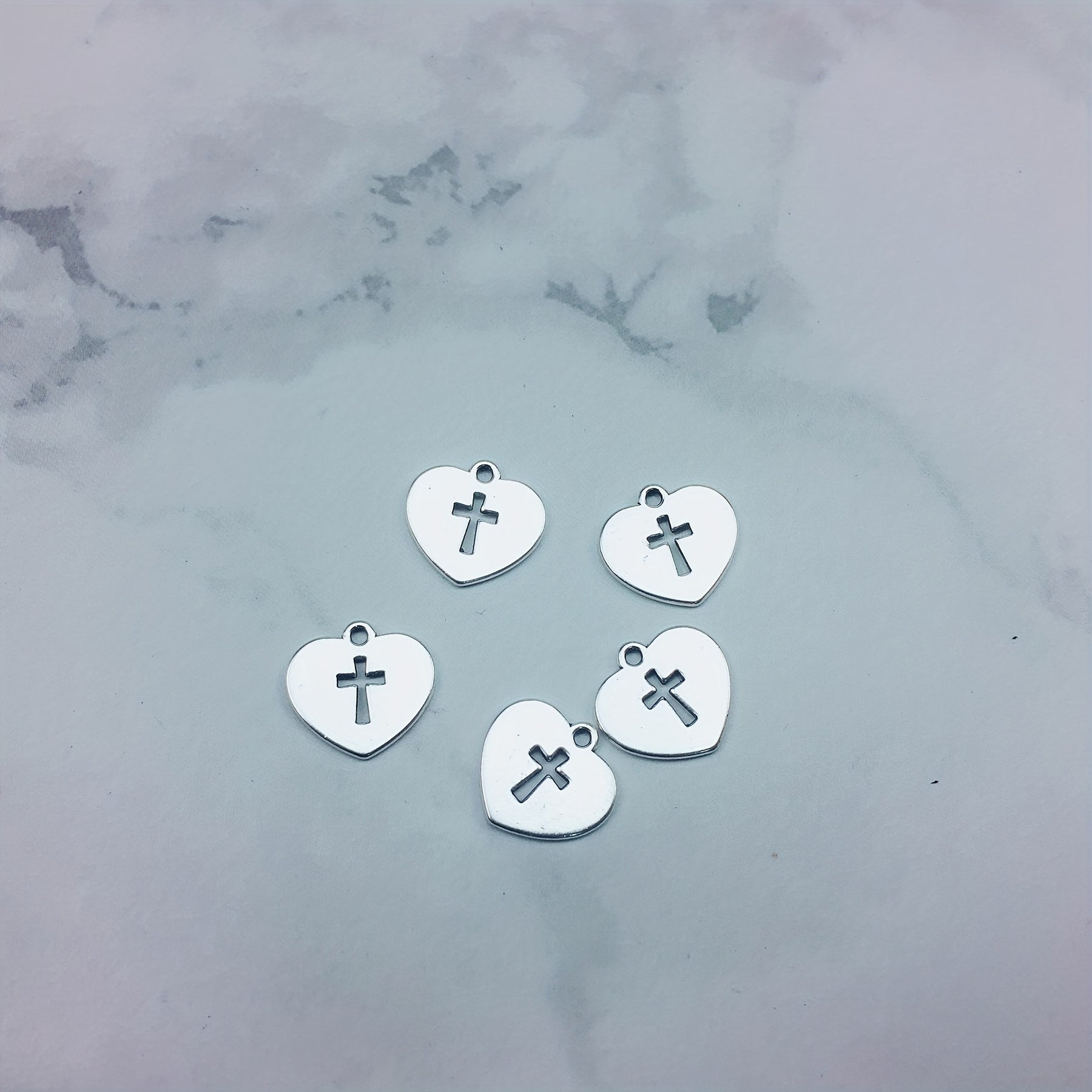 Add a touch of elegance to your jewelry creations with these silvery heart hollow cross charms. Perfect for making earrings, necklaces, and other accessories. Each charm measures 17x16mm.