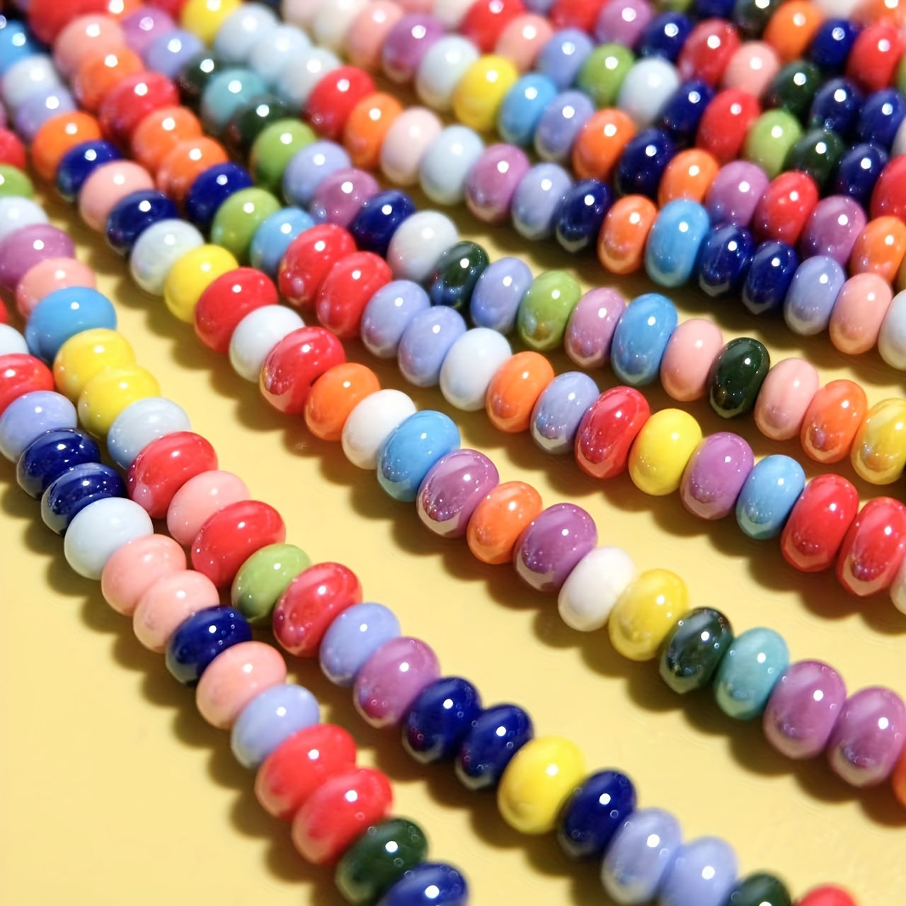 These colorful flat round abacus beads are perfect for creating your own bracelets, necklaces, and jewelry accessories. Add a unique touch to your designs with these ceramic beads.