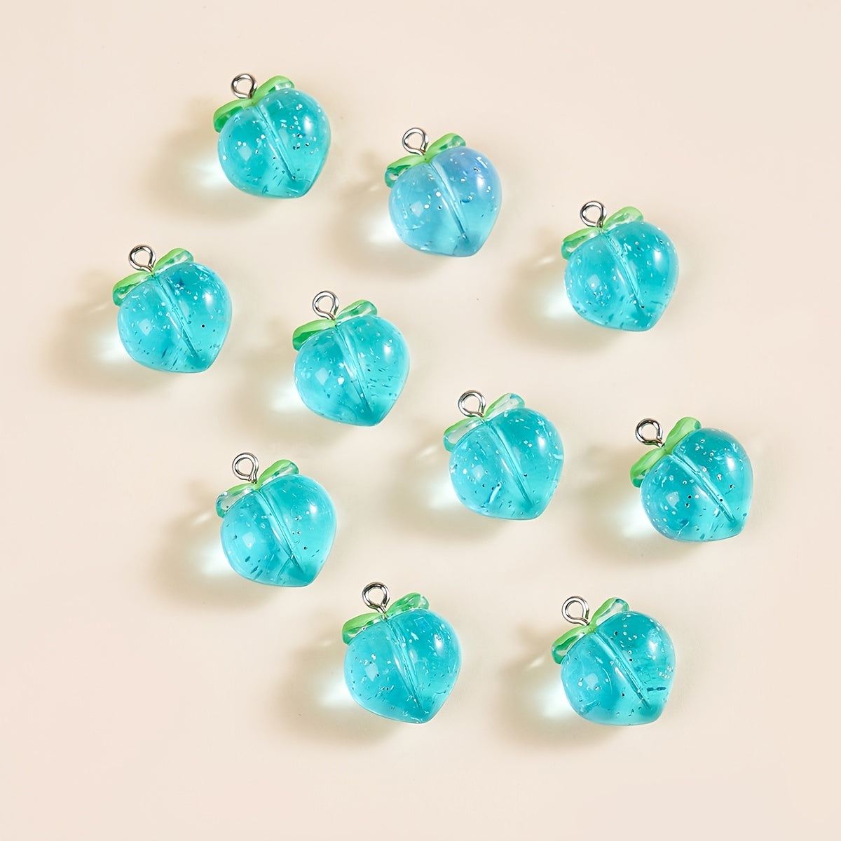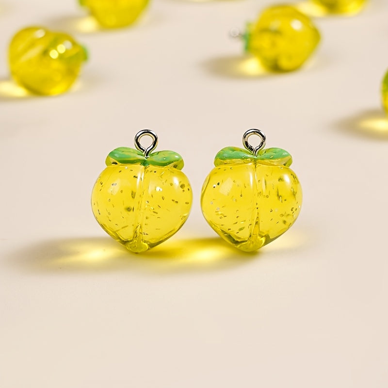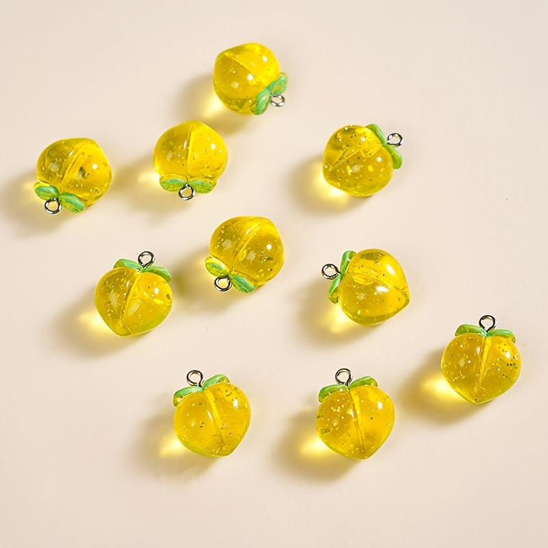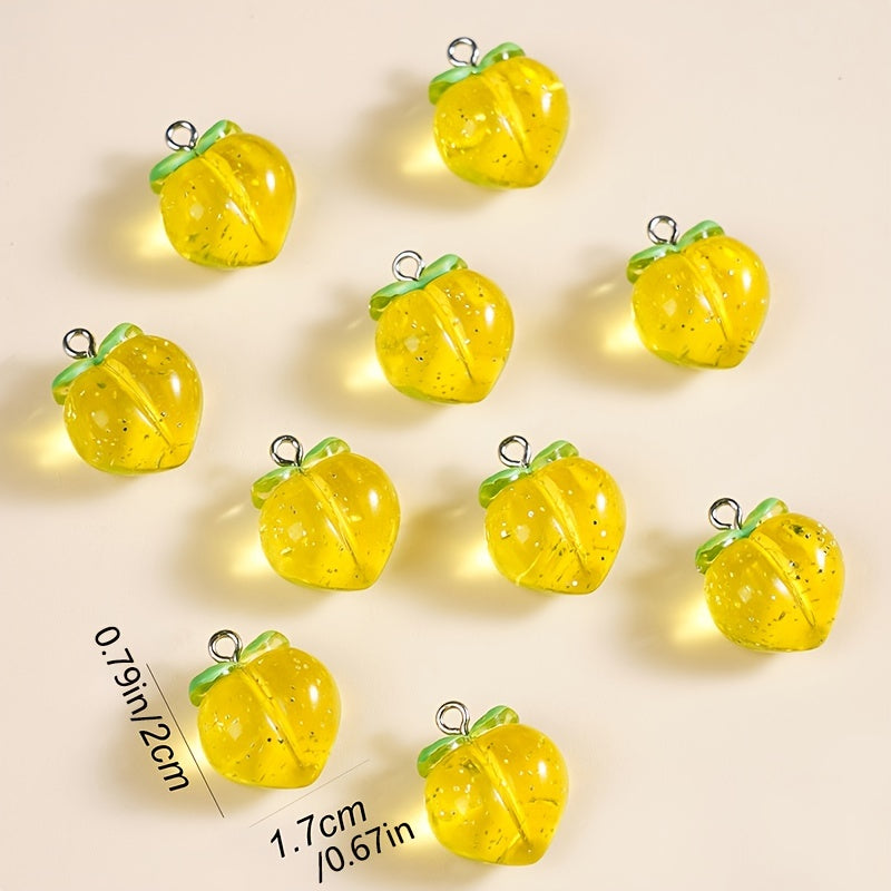 Add a touch of elegance to your jewelry crafts with this set of 10 three-dimensional crystal peach acrylic pendants. Perfect for earrings, bracelets, necklaces, and key chains.