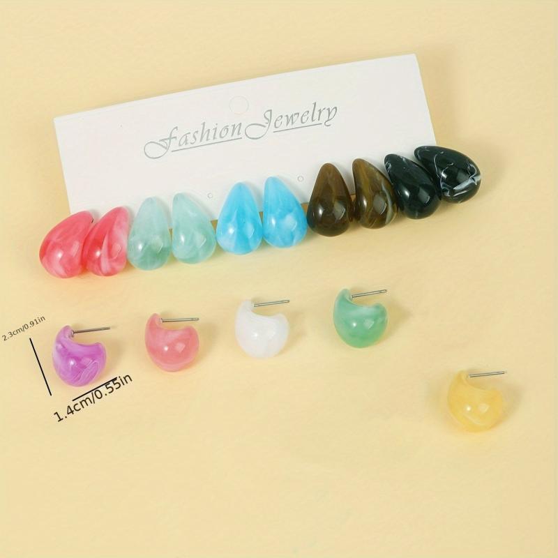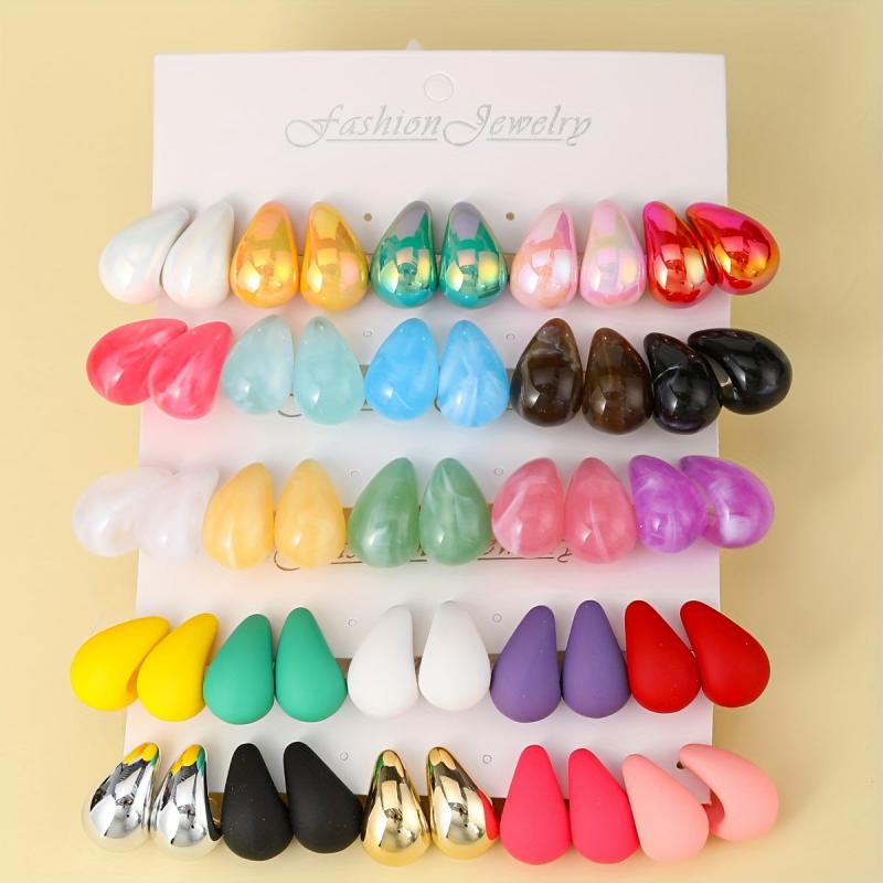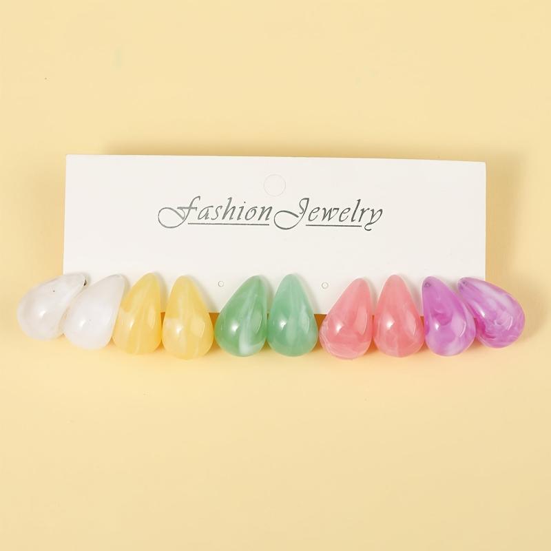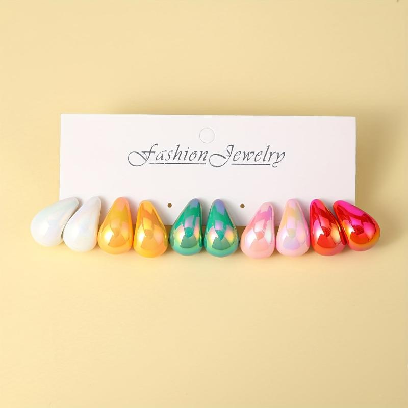Elevate your style with this set of lightweight water drop shaped earrings in vibrant dopamine colors. Perfect for daily wear.