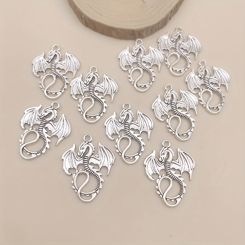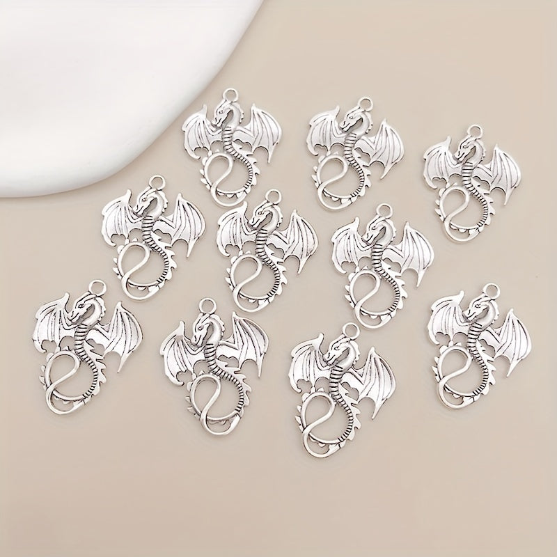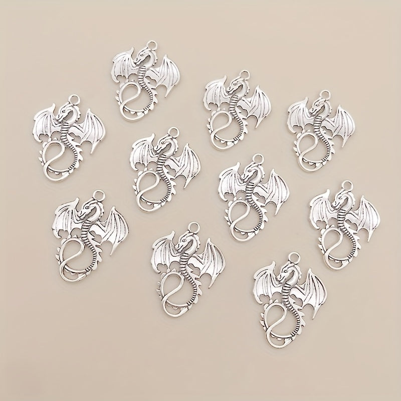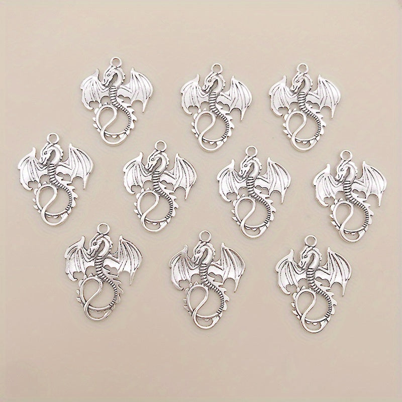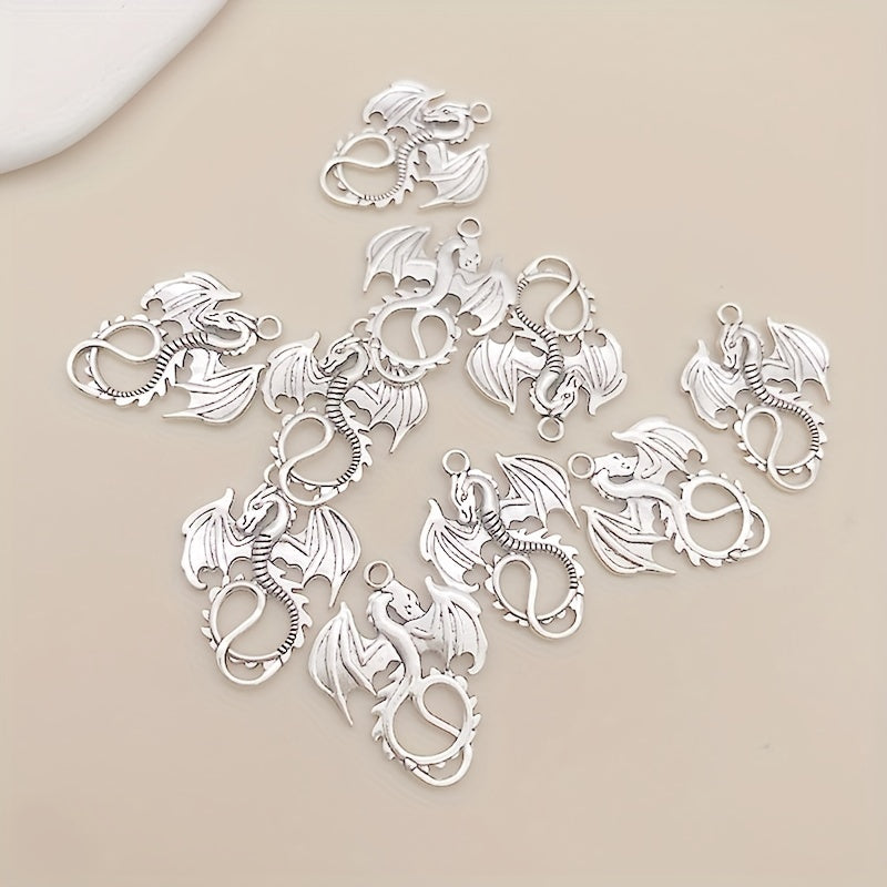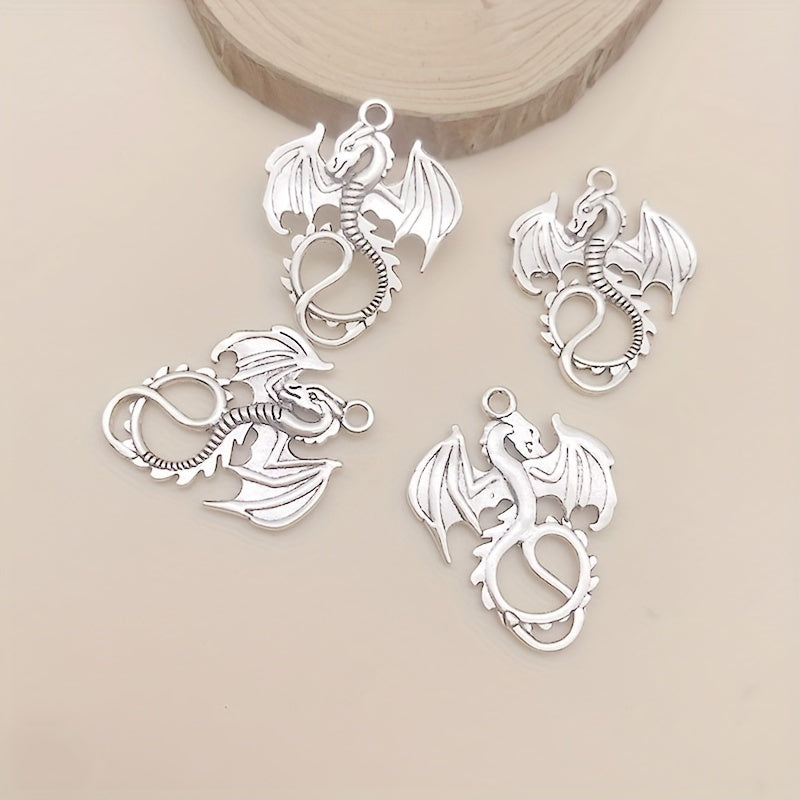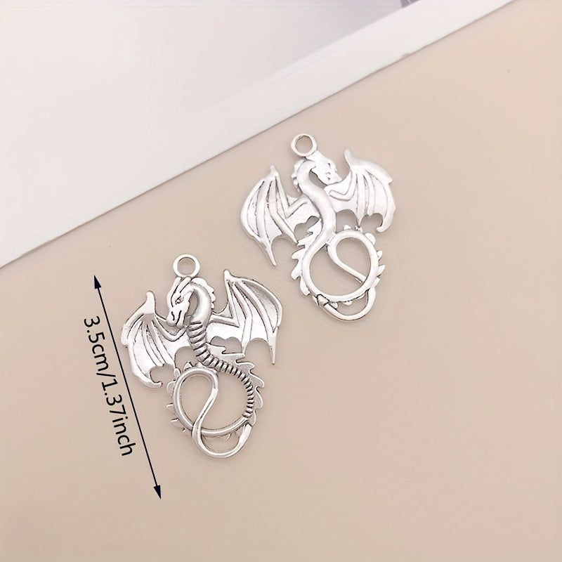 These antique silver dragon shape charms pendants are perfect for crafting necklaces, bracelets, and other types of jewelry. They are made of zinc alloy and measure 28x35mm.