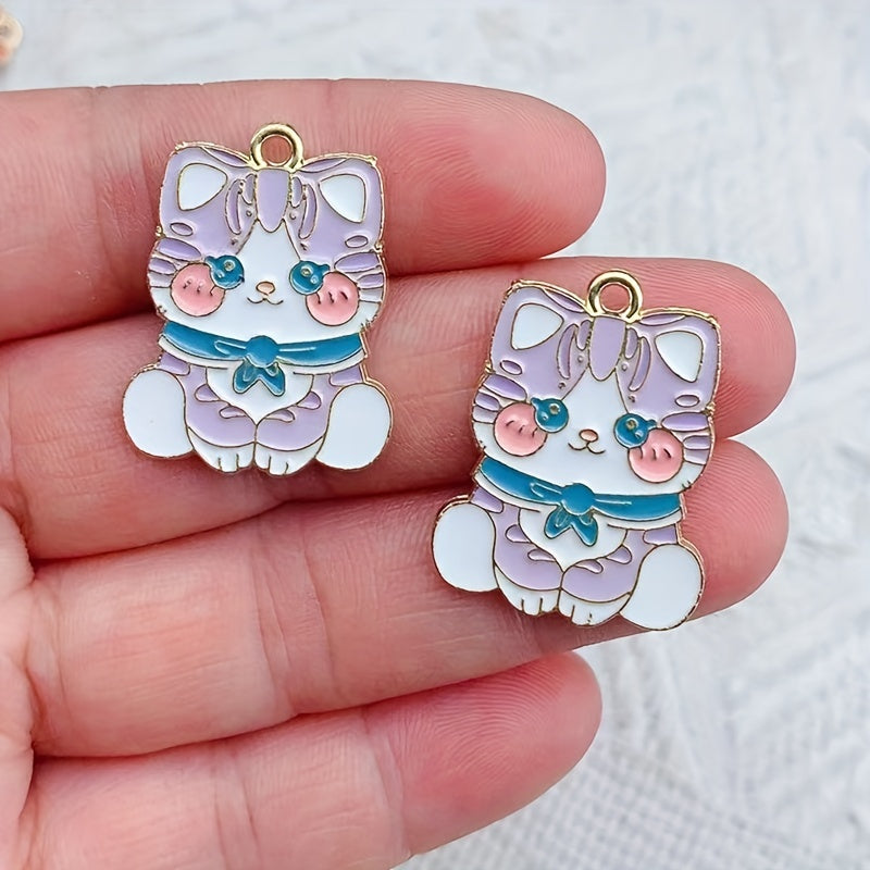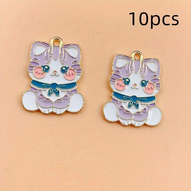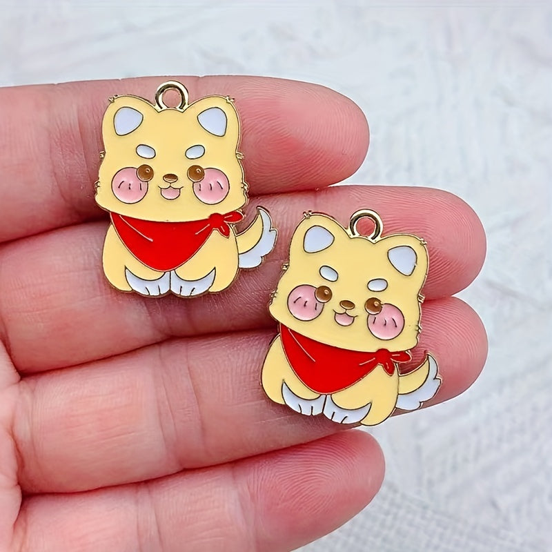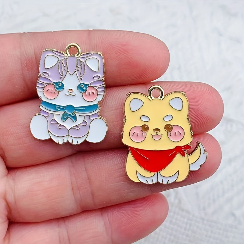 Add a touch of cuteness to your jewelry creations with these cartoon animal charms. The set includes 10 pieces featuring adorable dog and cat designs.