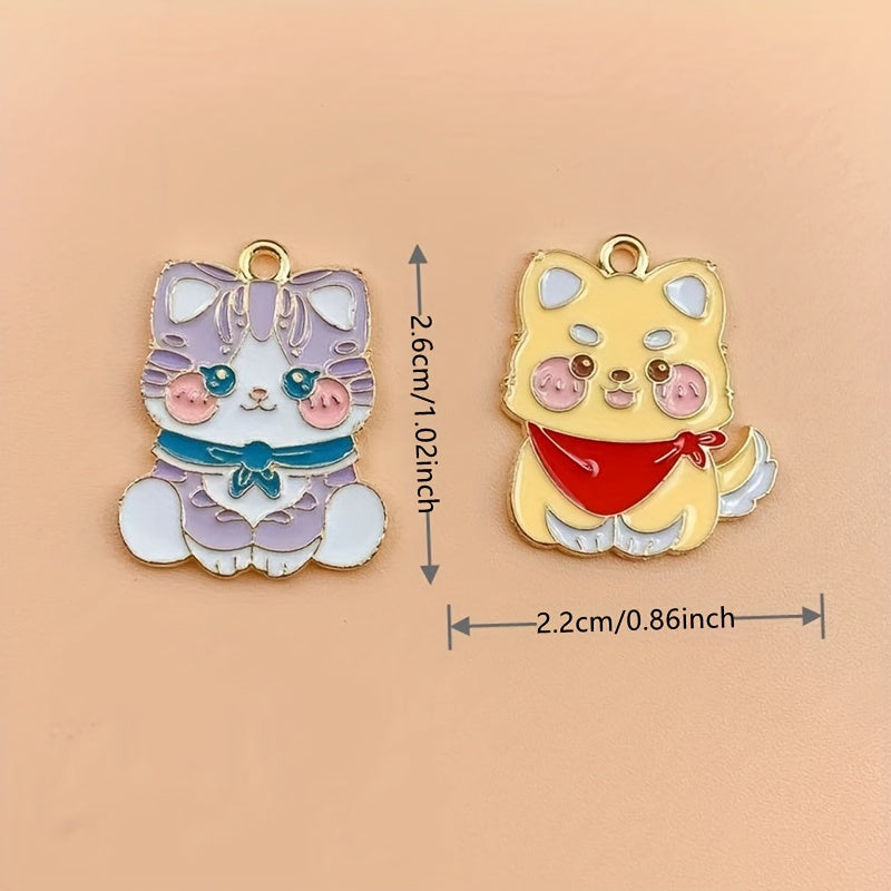 10pcs Enamel Dog Cat Charms for DIY Necklaces Earrings
