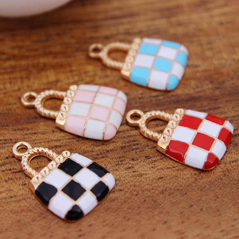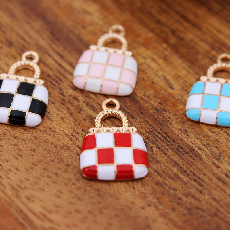 10pcs Enamel Lattice Bag Alloy Pendant Jewelry DIY Accessories