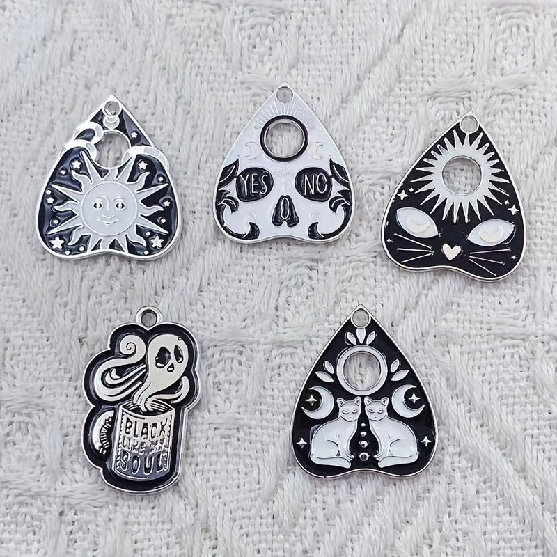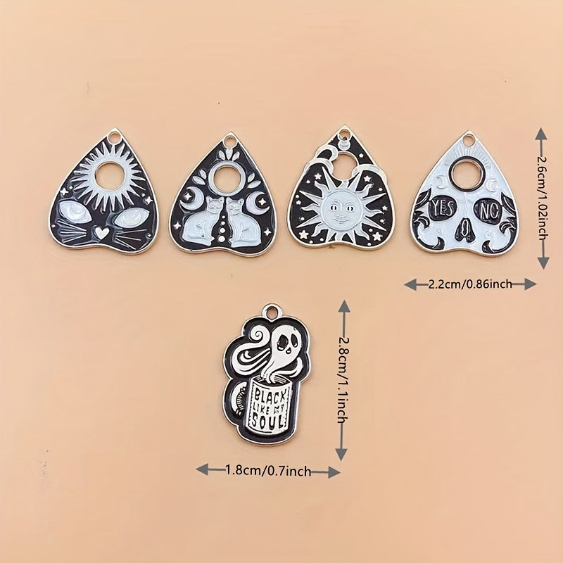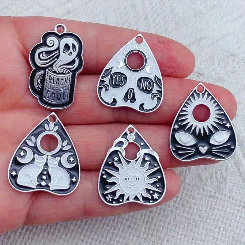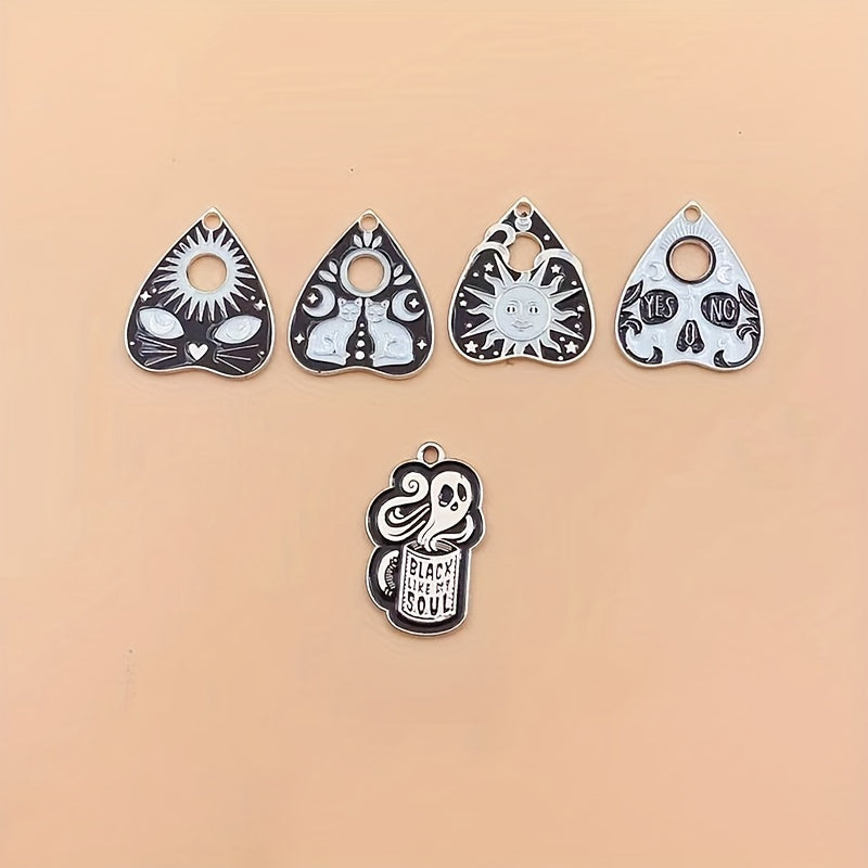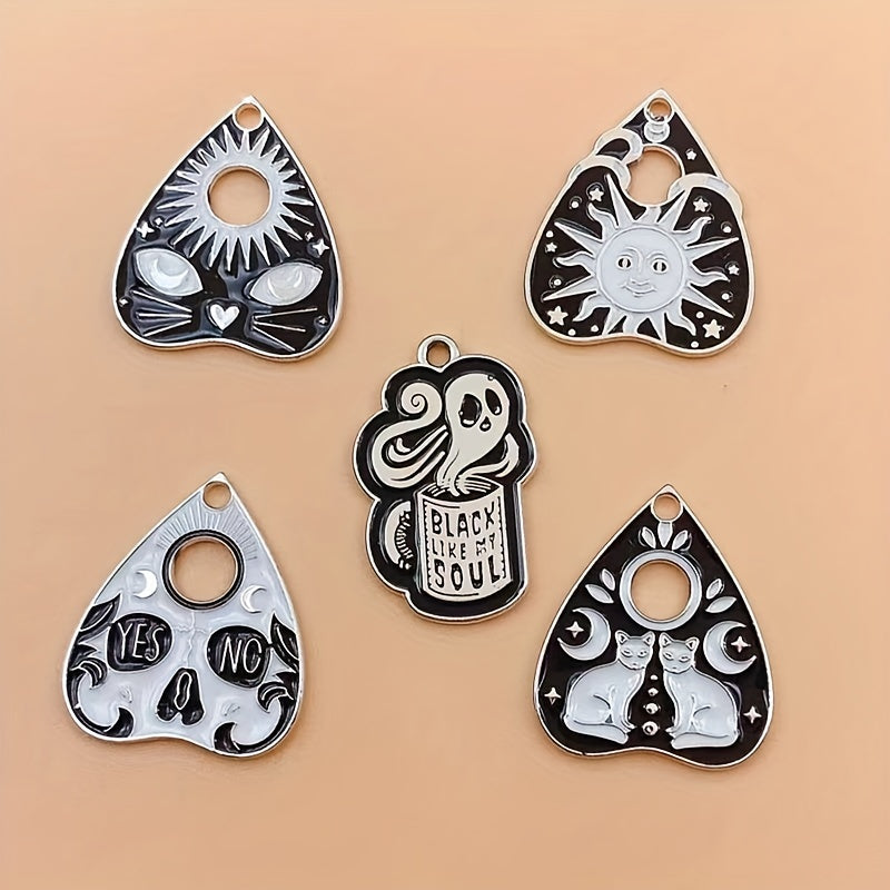 10pcs Enamel Sun Moon Cat Ghost Pattern Pendants DIY Jewelry Making