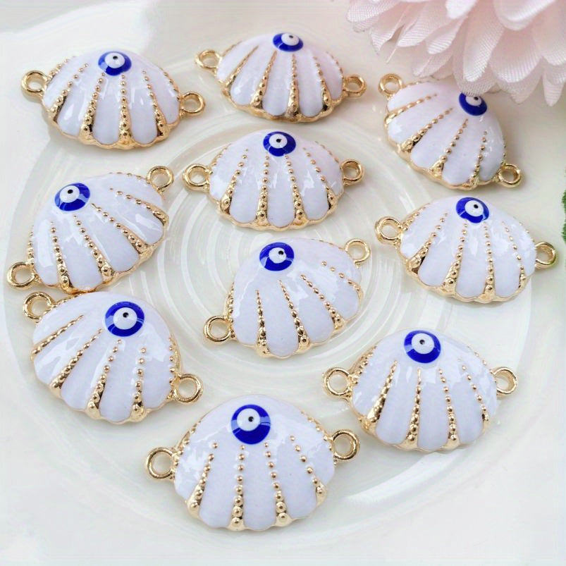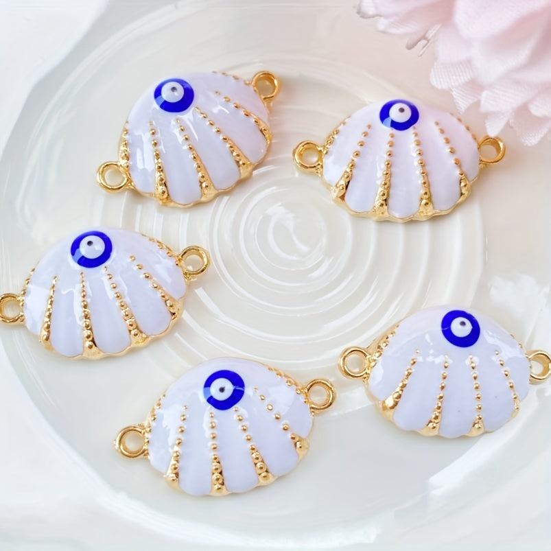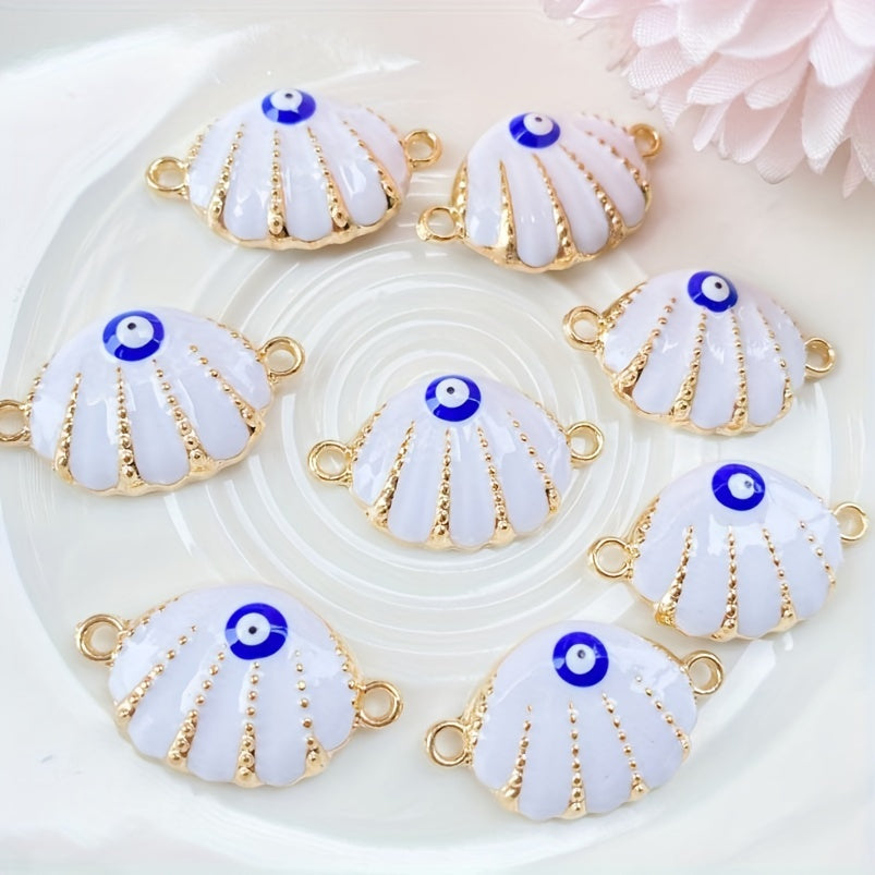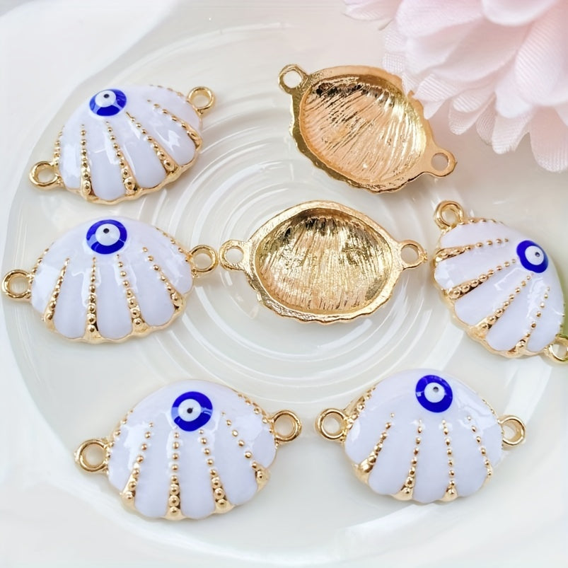 Create beautiful jewelry with these eye pattern shell double hanging connectors. Perfect for making unique and eye-catching pieces.