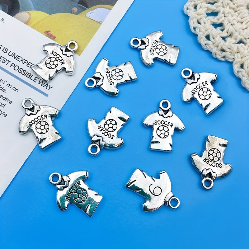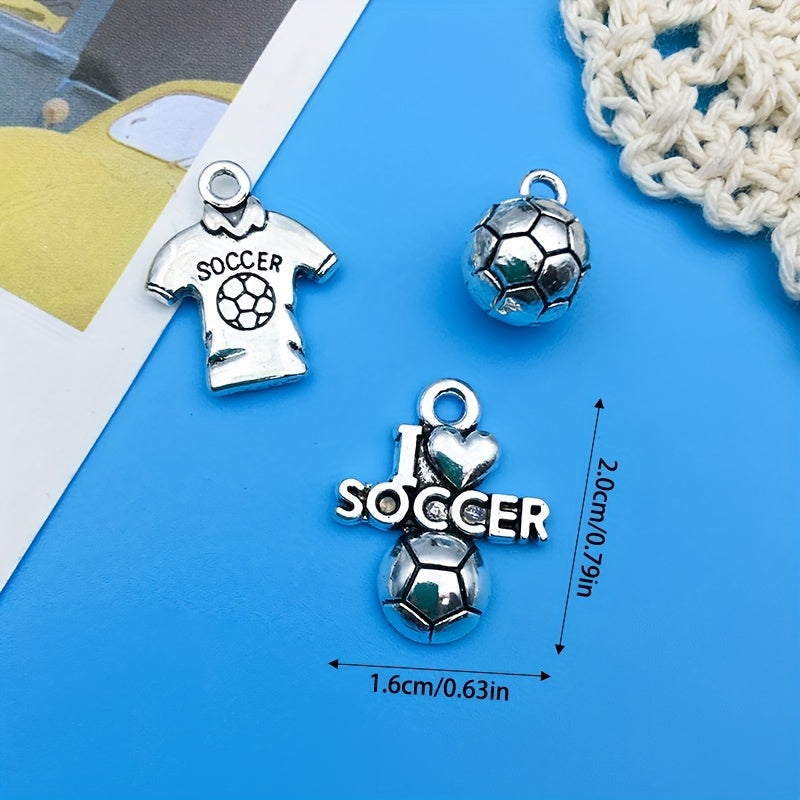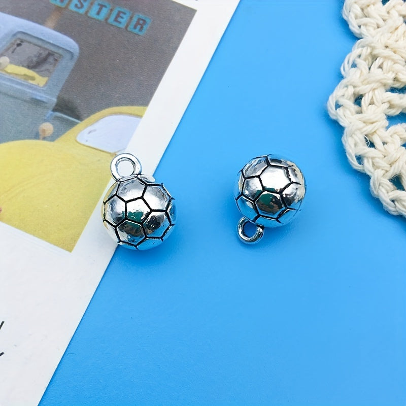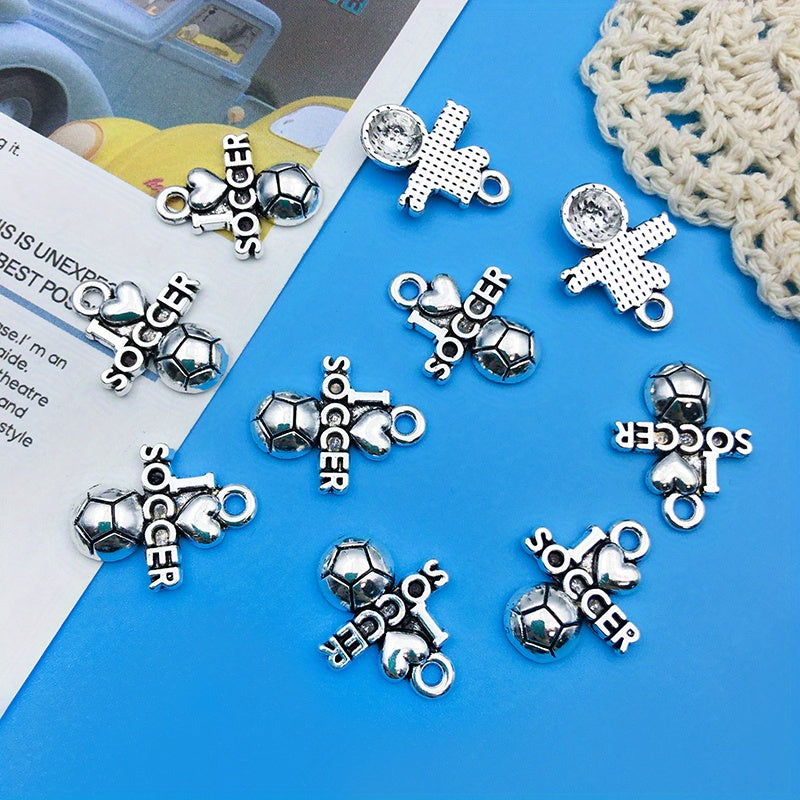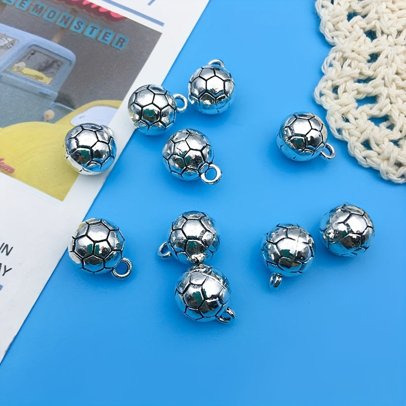 This set includes 10 zinc alloy antique silver football pendants ideal for creating necklaces, bracelets, earrings, and other jewelry pieces. Perfect for sports enthusiasts and DIY jewelry makers.