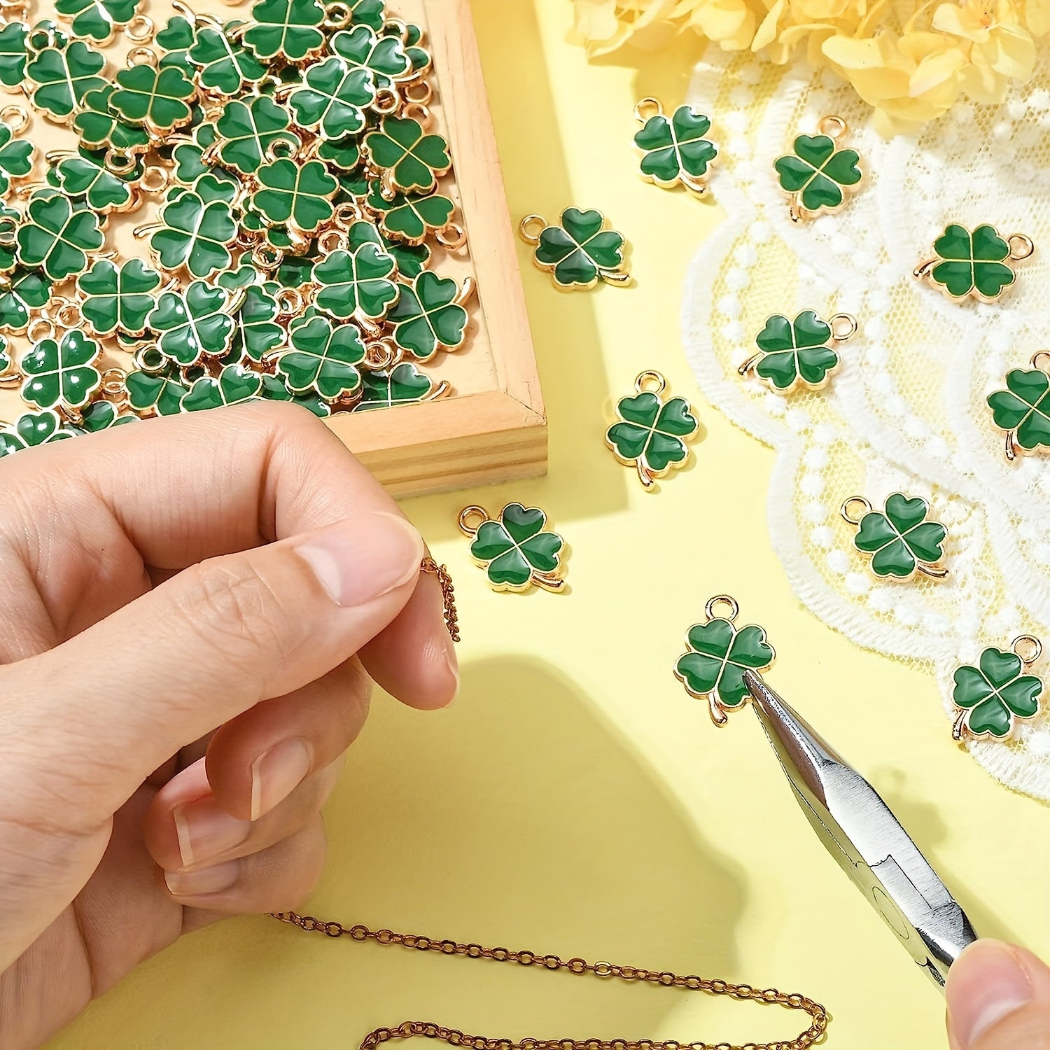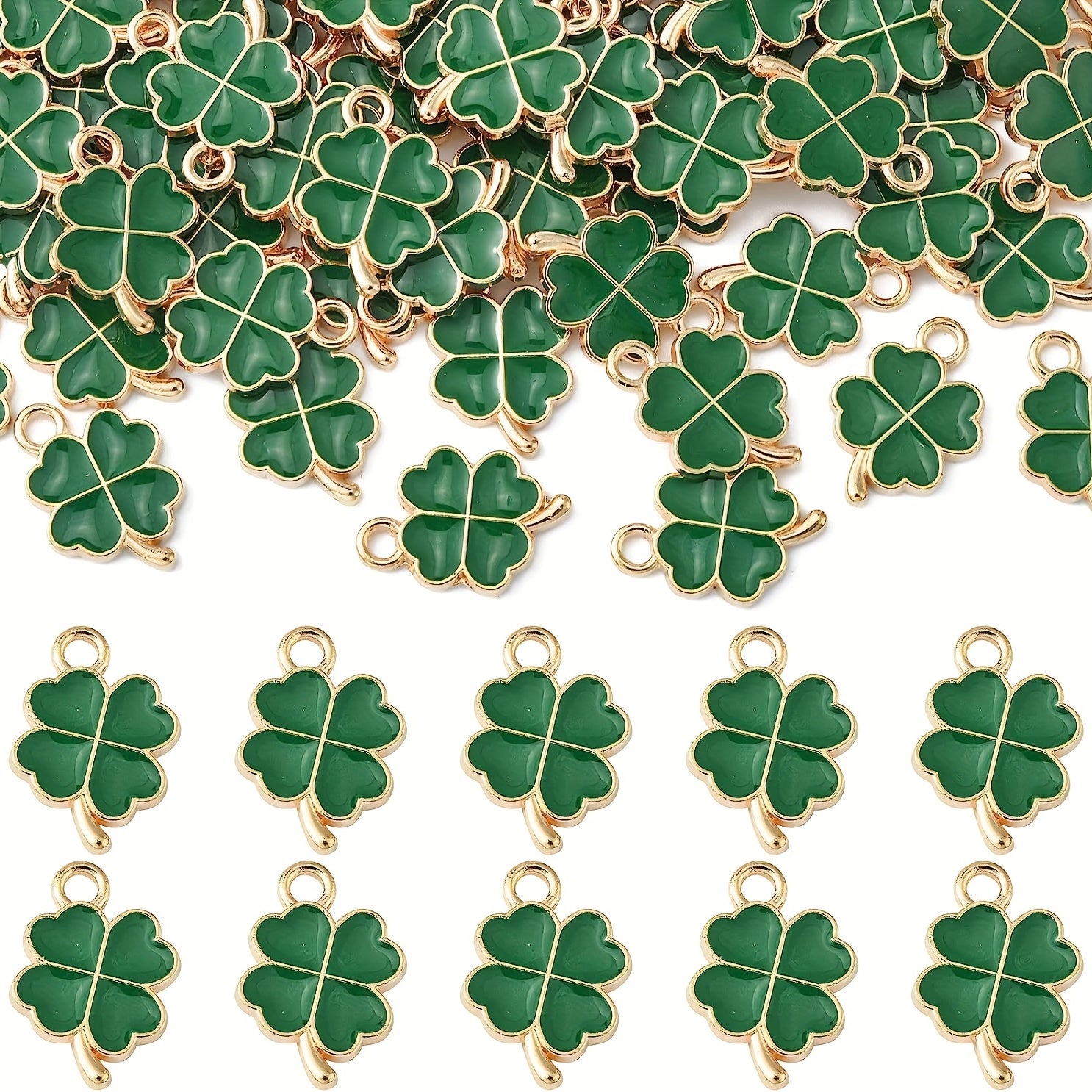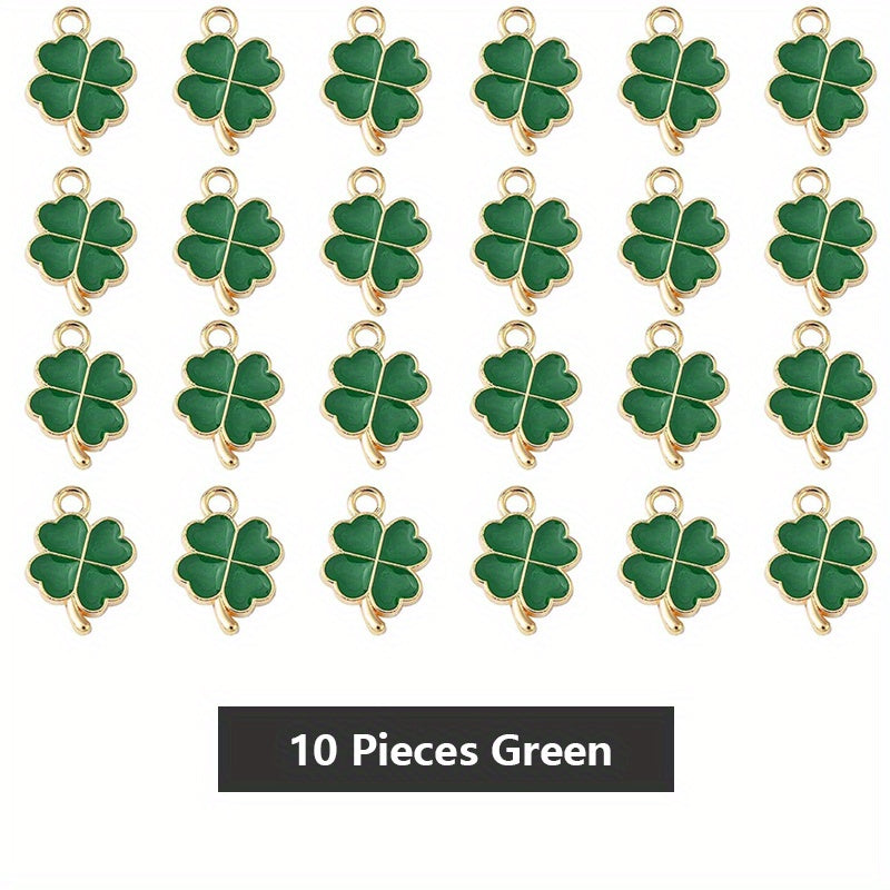 Add a touch of luck to your DIY jewelry projects with these green clover charms. Each charm features an enamel four leaves clover design, perfect for creating lucky-themed accessories.